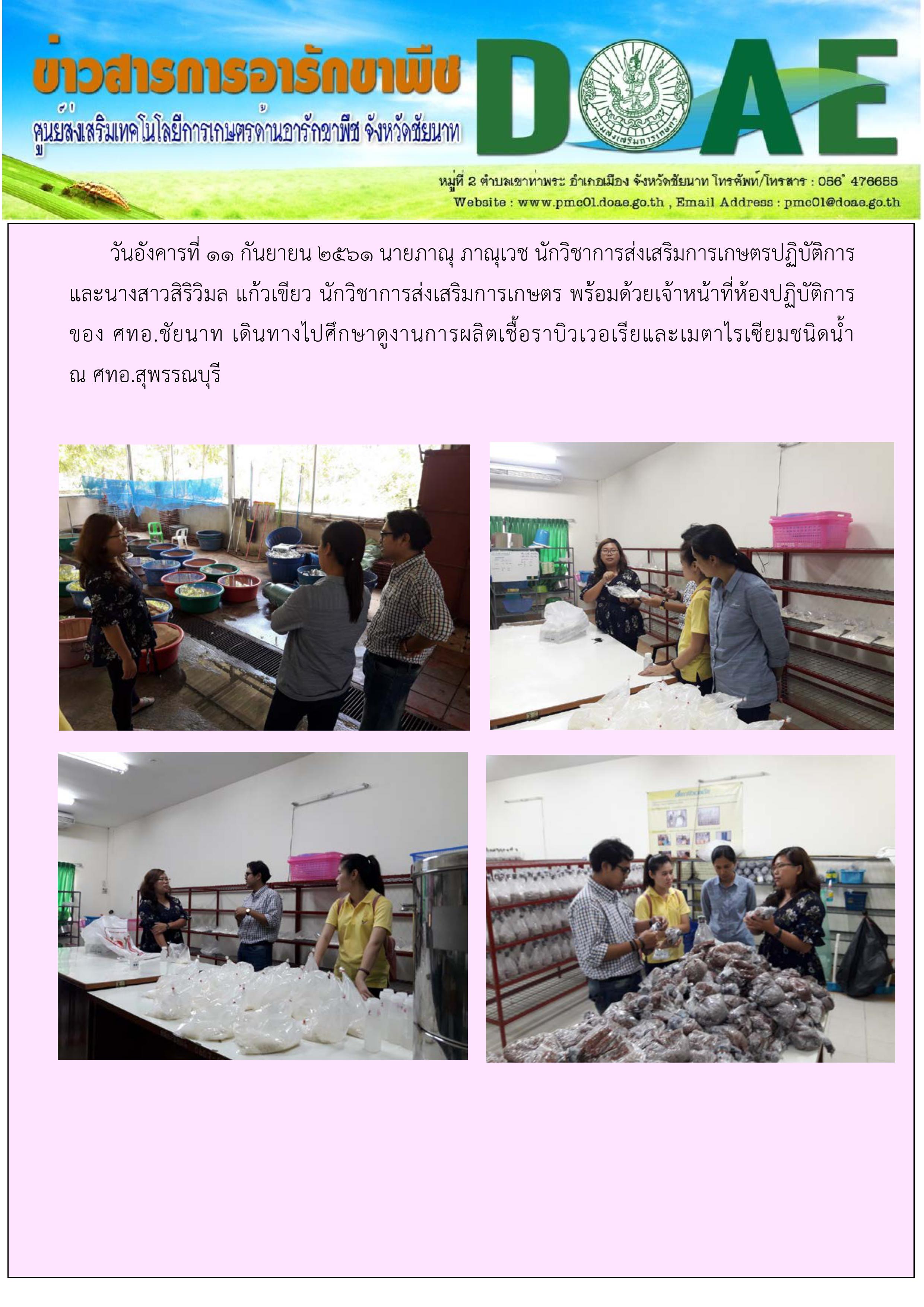11-9-61 ศึกษาดูงานการผลิตเชื้อราบิวเวอเรีย และเมตาไรเซียมชนิดน้ำ ณ ศทอ.สุพรรณบุรี