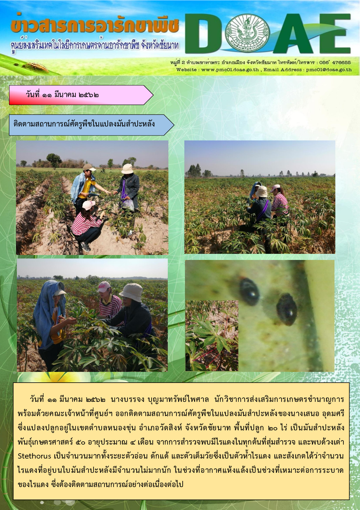 11-3-62 ติดตามสถานการณ์ศัตรูพืช ในแปลงมันสำปะหลัง
