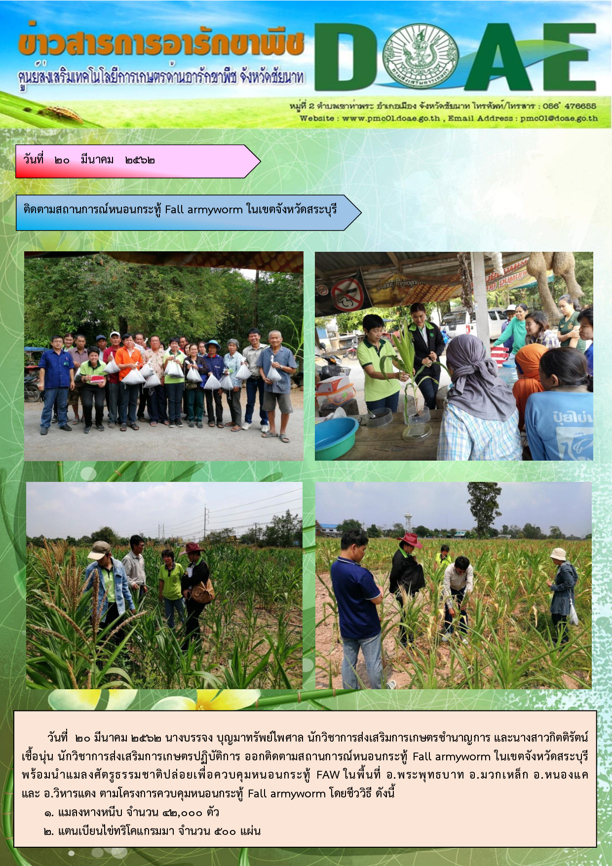 20-3-62 ติดตามสถานการณ์หนอนกระทู้ Fall armyworm ในเขตจังหวัดสระบุรี