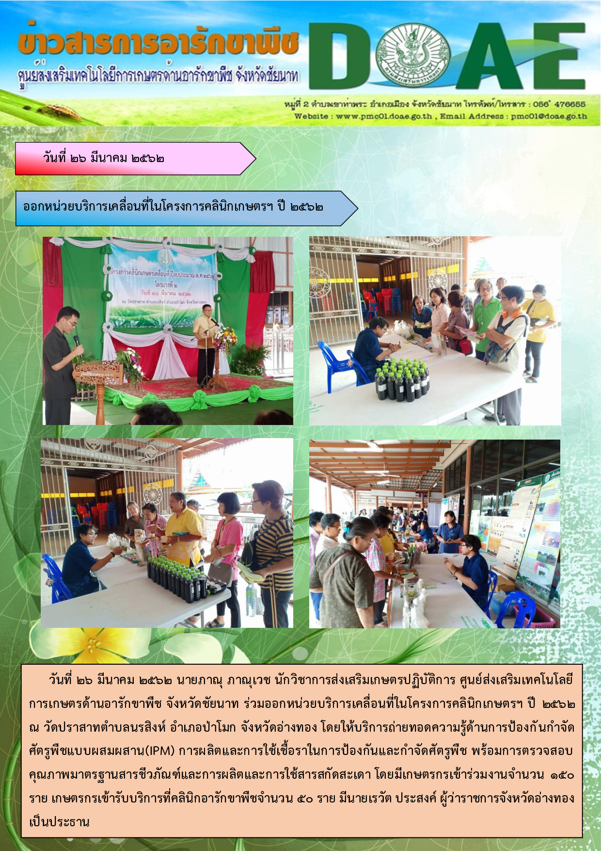 26-3-62 ออกหน่วยบริการเคลื่อนที่ ในโครงการคลินิกเกษตรเคลื่อนที่ ปี 2562
