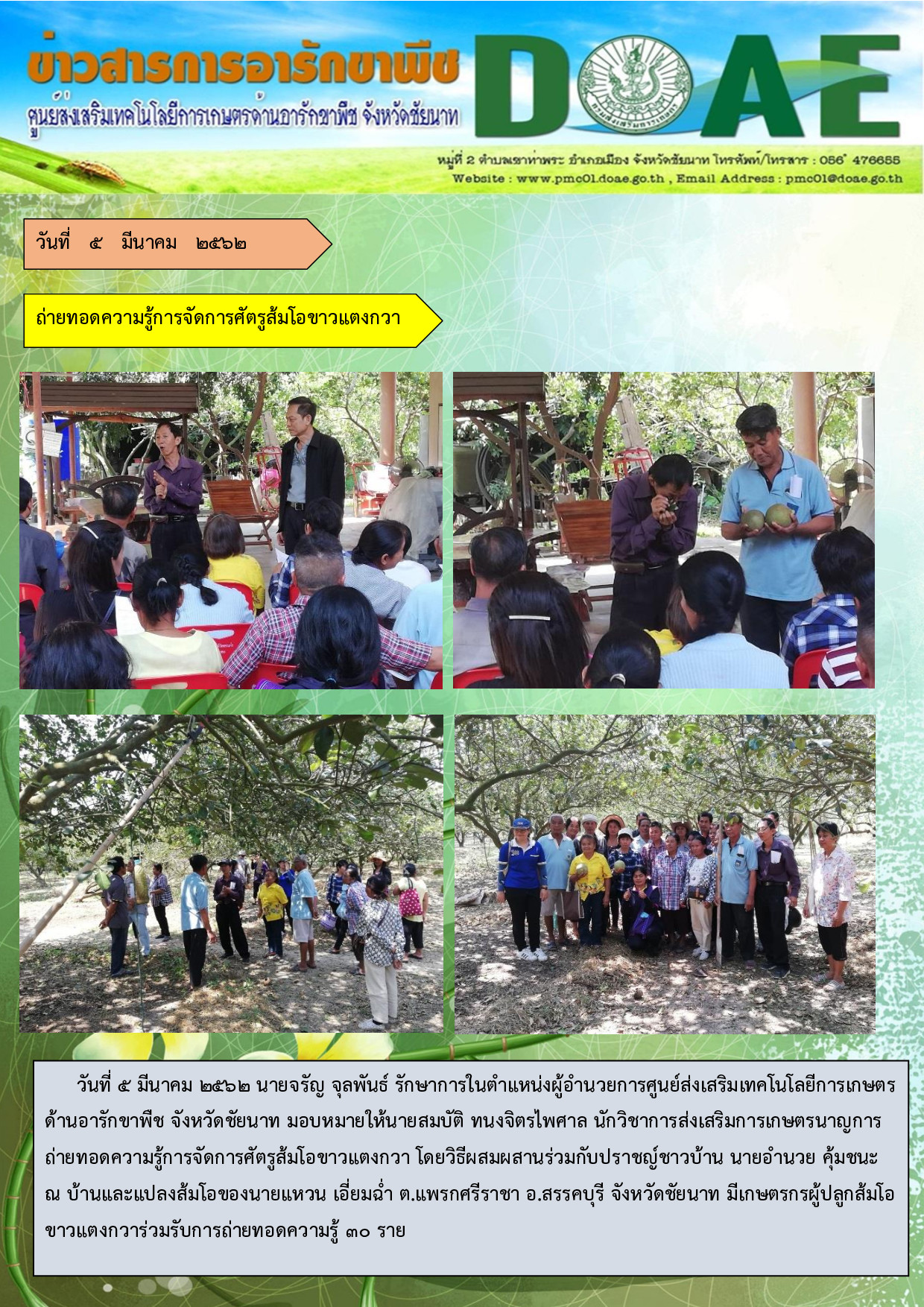 5-3-62 ถ่ายทอดความรู้ การจัดการศัตรูส้มโอขาวแตงกวา