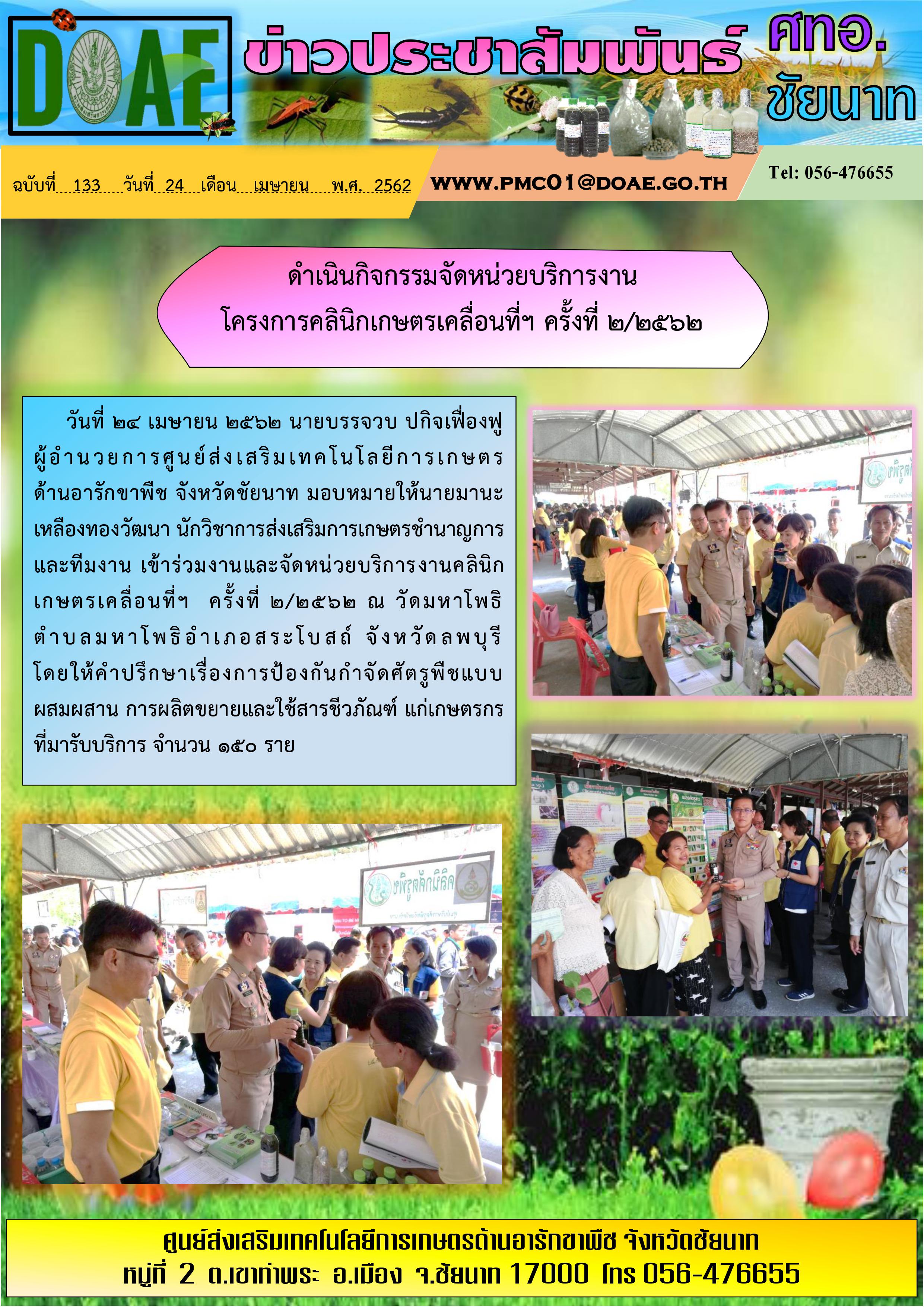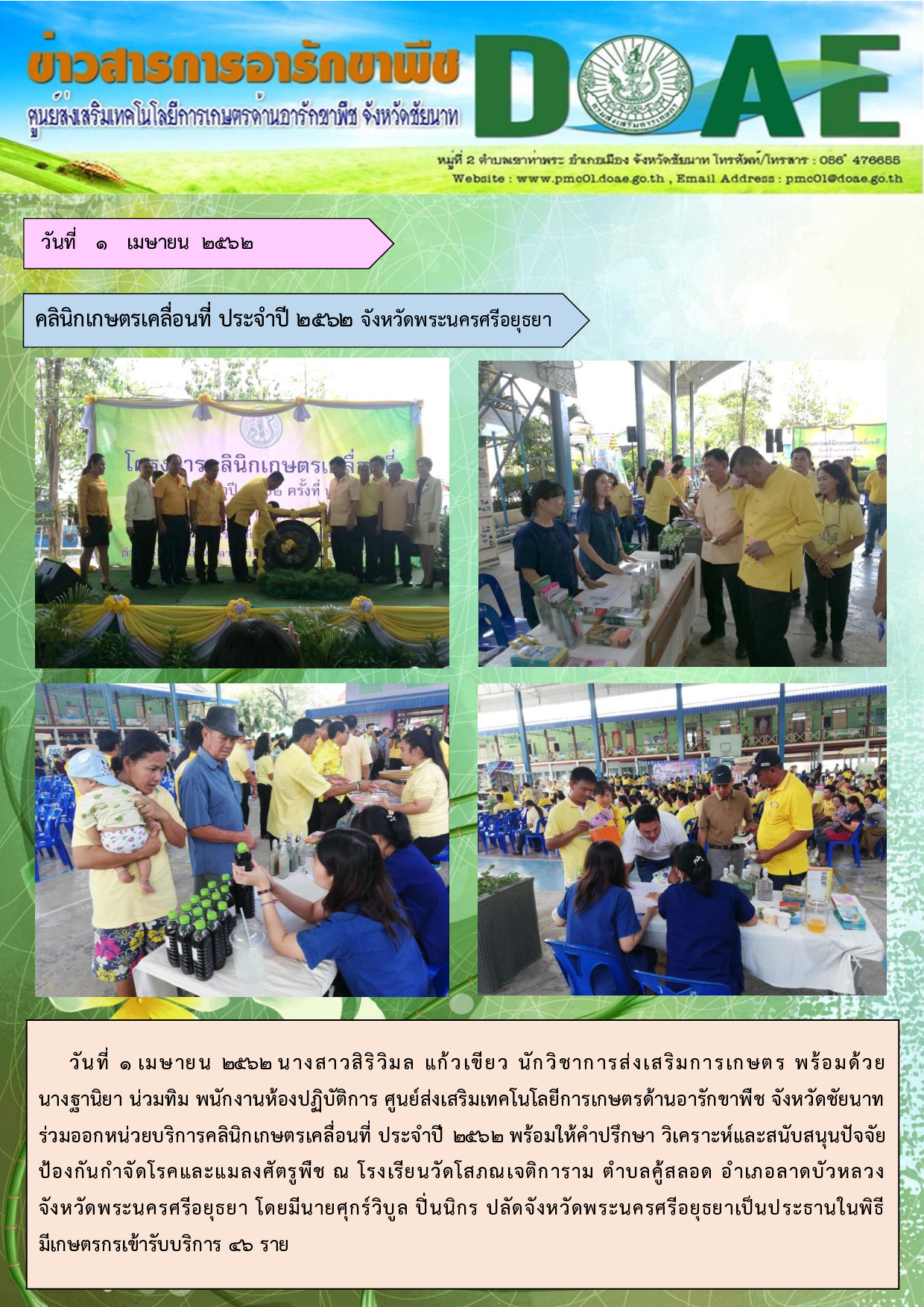 1-4-62 ออกหน่วยบริการคลินิกเกษตรเคลื่อนที่ ประจำปี 2562 พร้อมให้คำปรึกษาวิเคราะห์และสนับสนุนปัจจัย ป้องกันกำจัดโรคและแมลงศัตรูพืช ณ โรงเรียนวัดโสภณเจติการาม