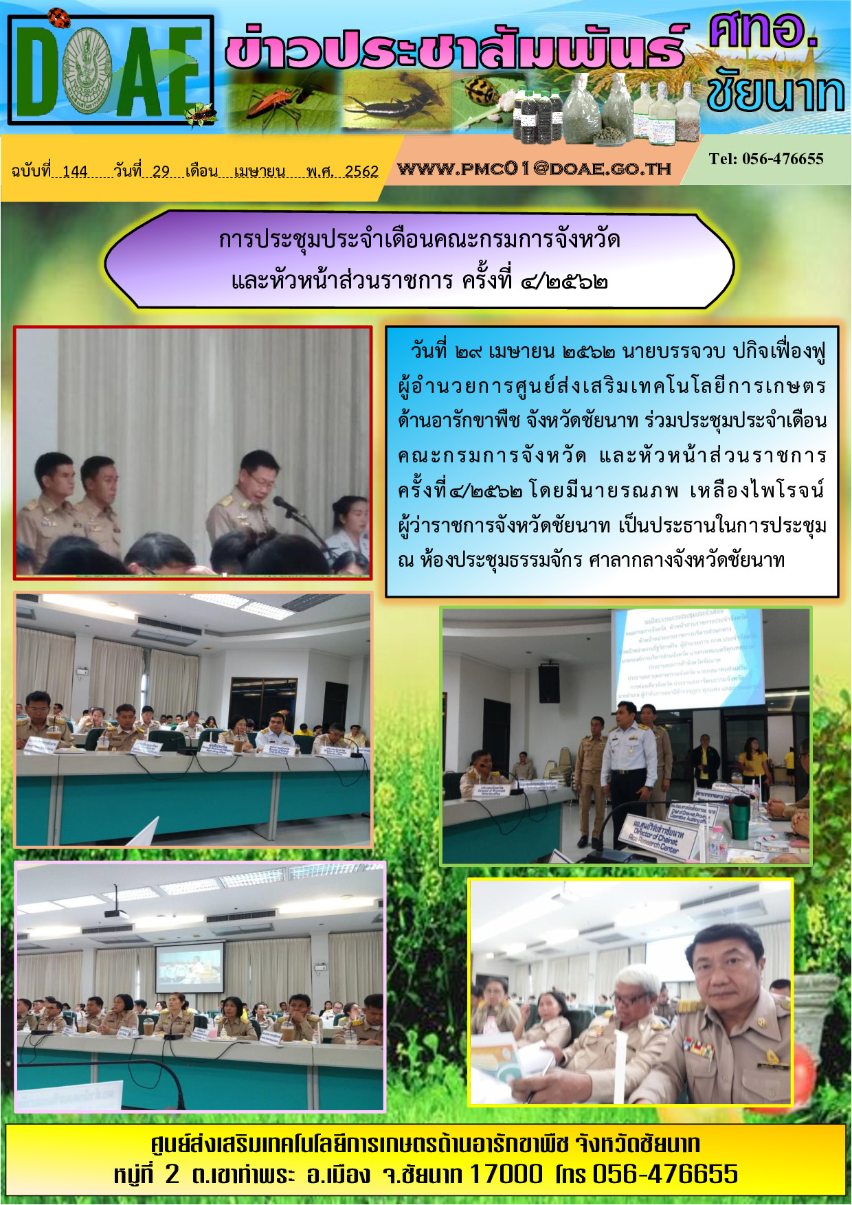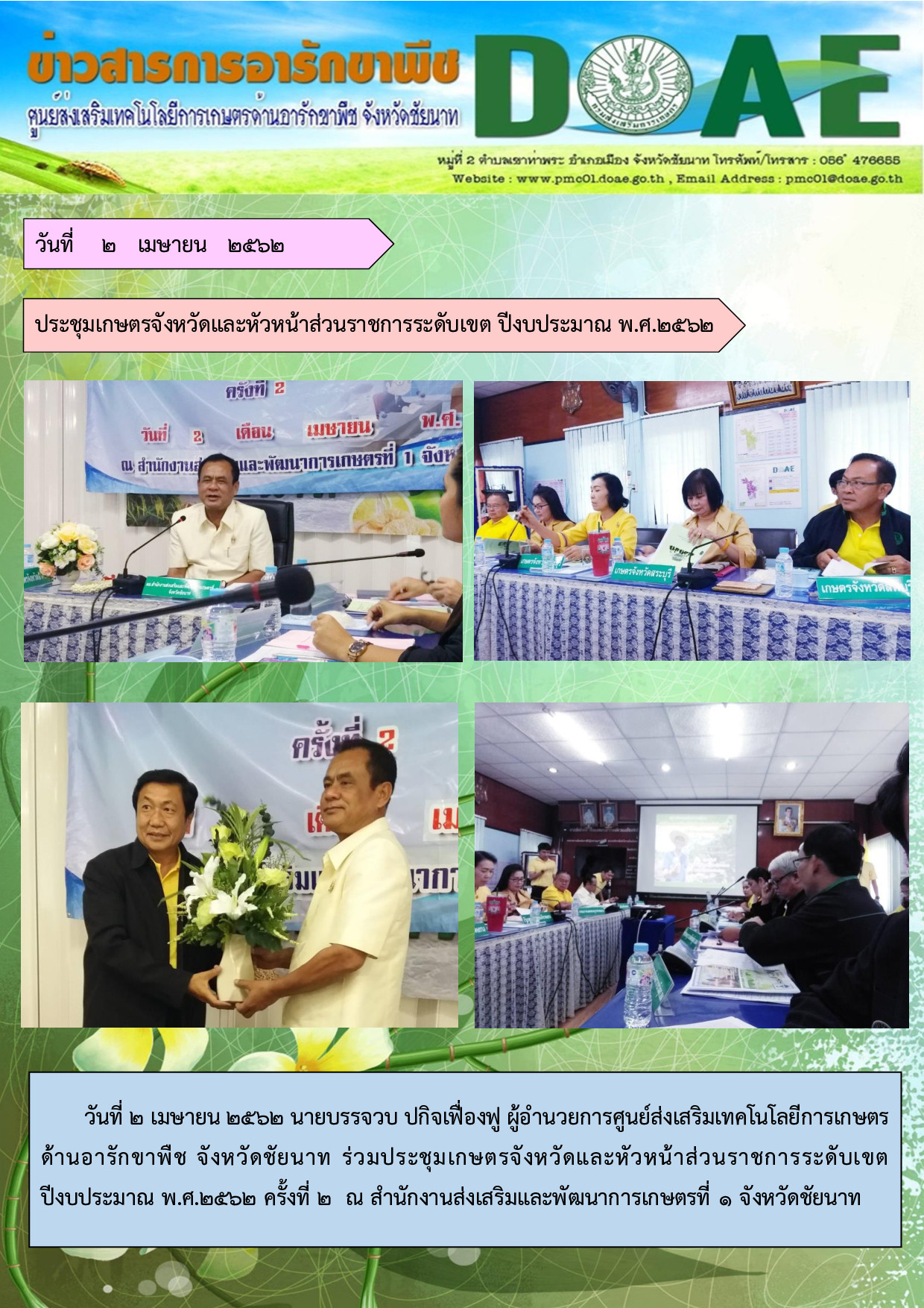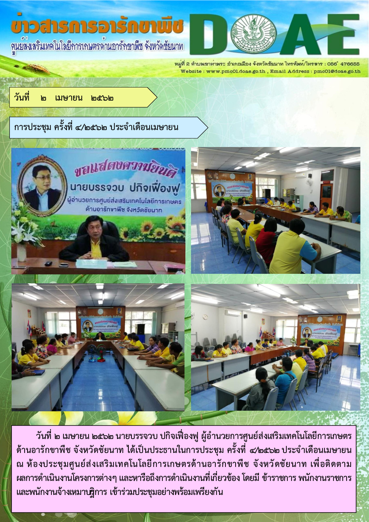 2-4-62 การประชุม ครั้งที่ 4/2562 ประจำเดือนเมษายน ณ ห้องประชุมศูนย์ส่งเสริมเทคโนโลยี การเกษตรด้านอารักขาพืช จังหวัดชัยนาท