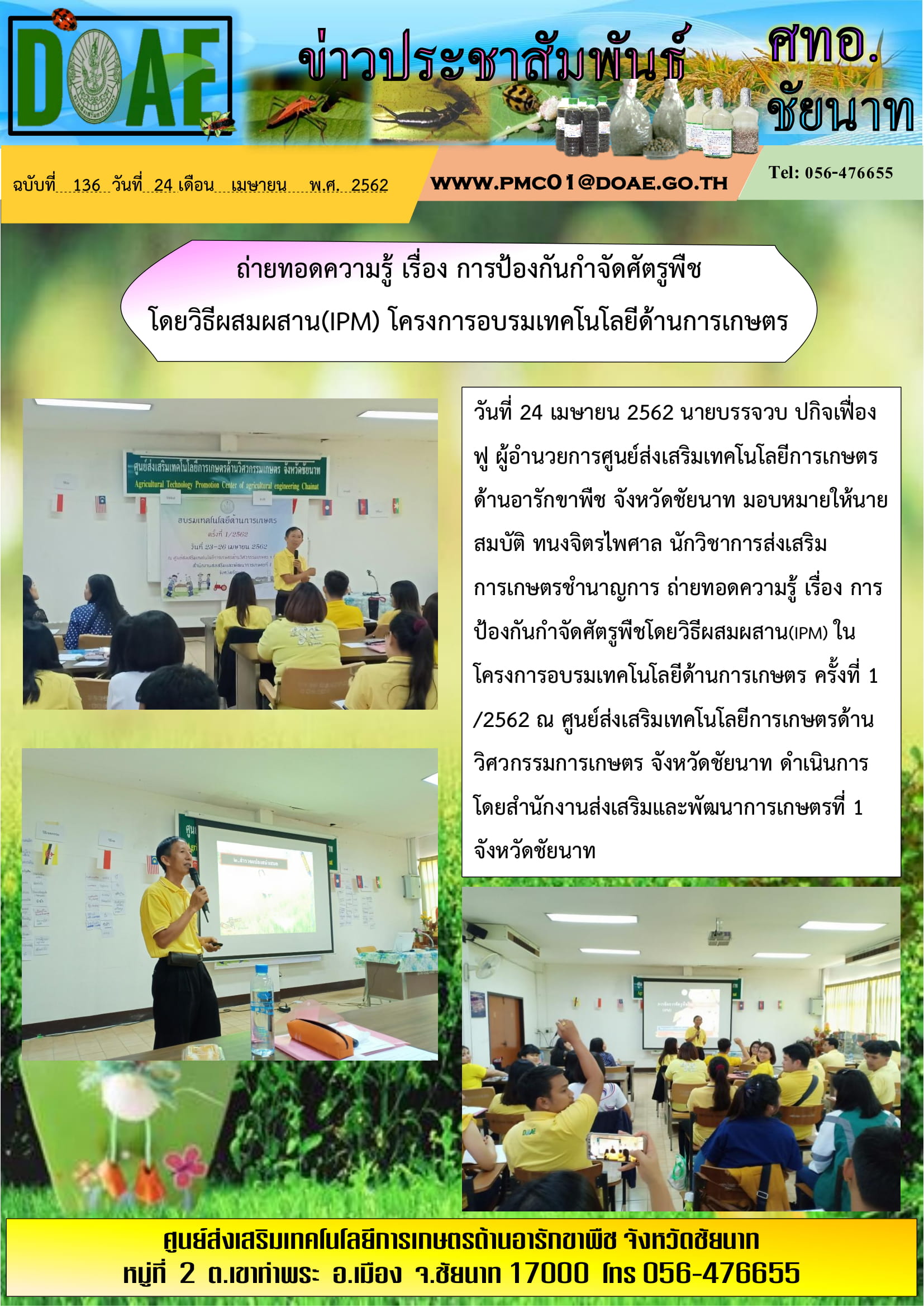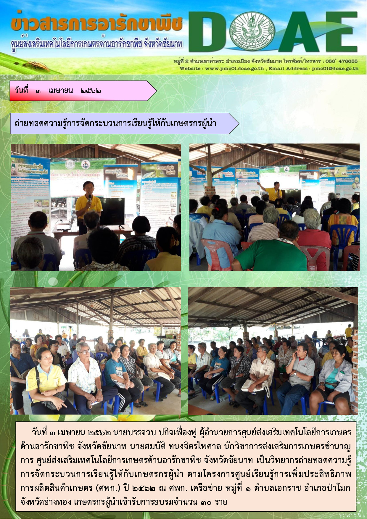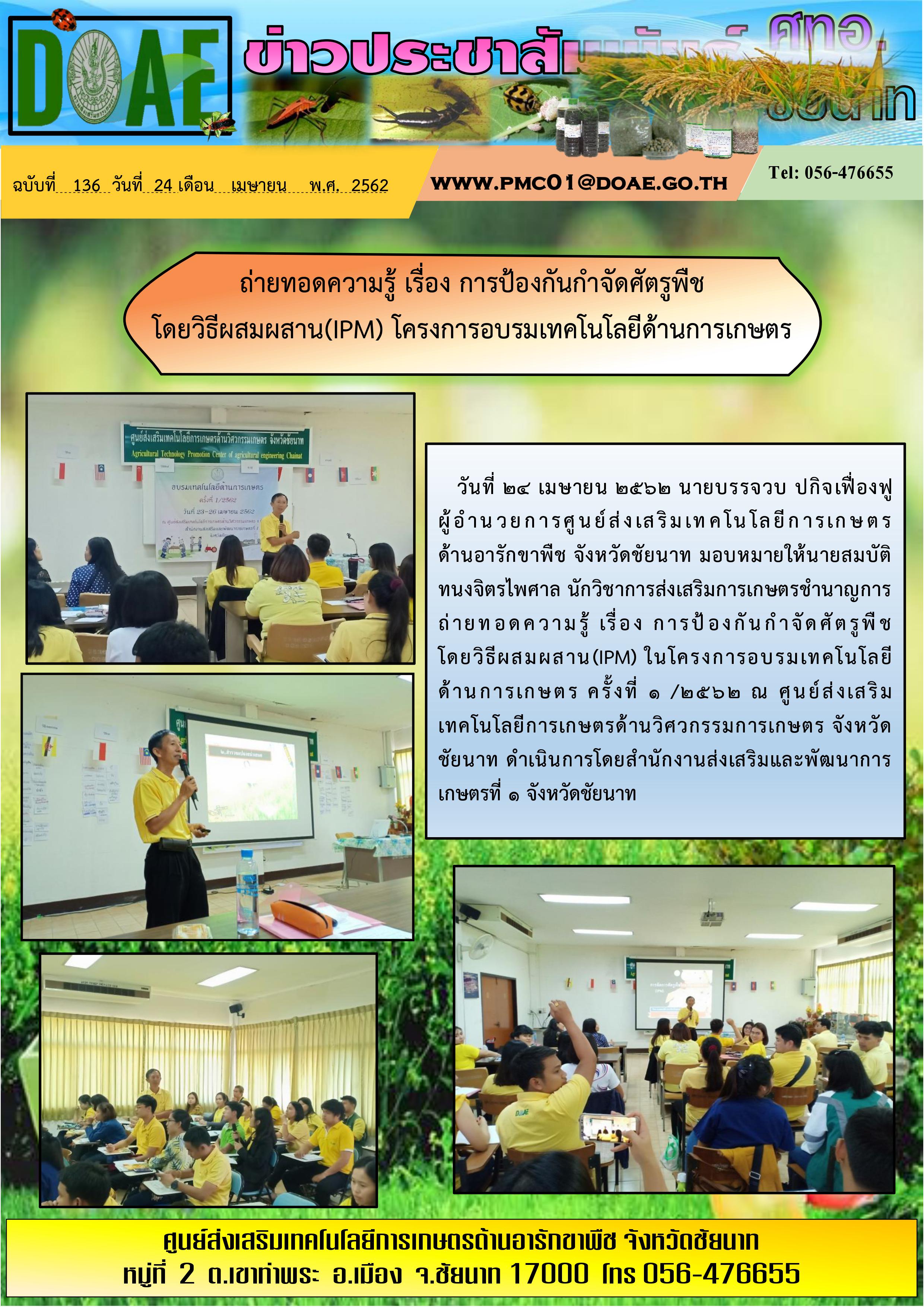 24-4-62 ถ่ายทอดความรู้ เรื่องการป้องกันกำจัดศัตรูพืช โดยวิธีผสมผสาน(IPM)โครงการอบรม เทคโนโลยีด้านการเกษตร