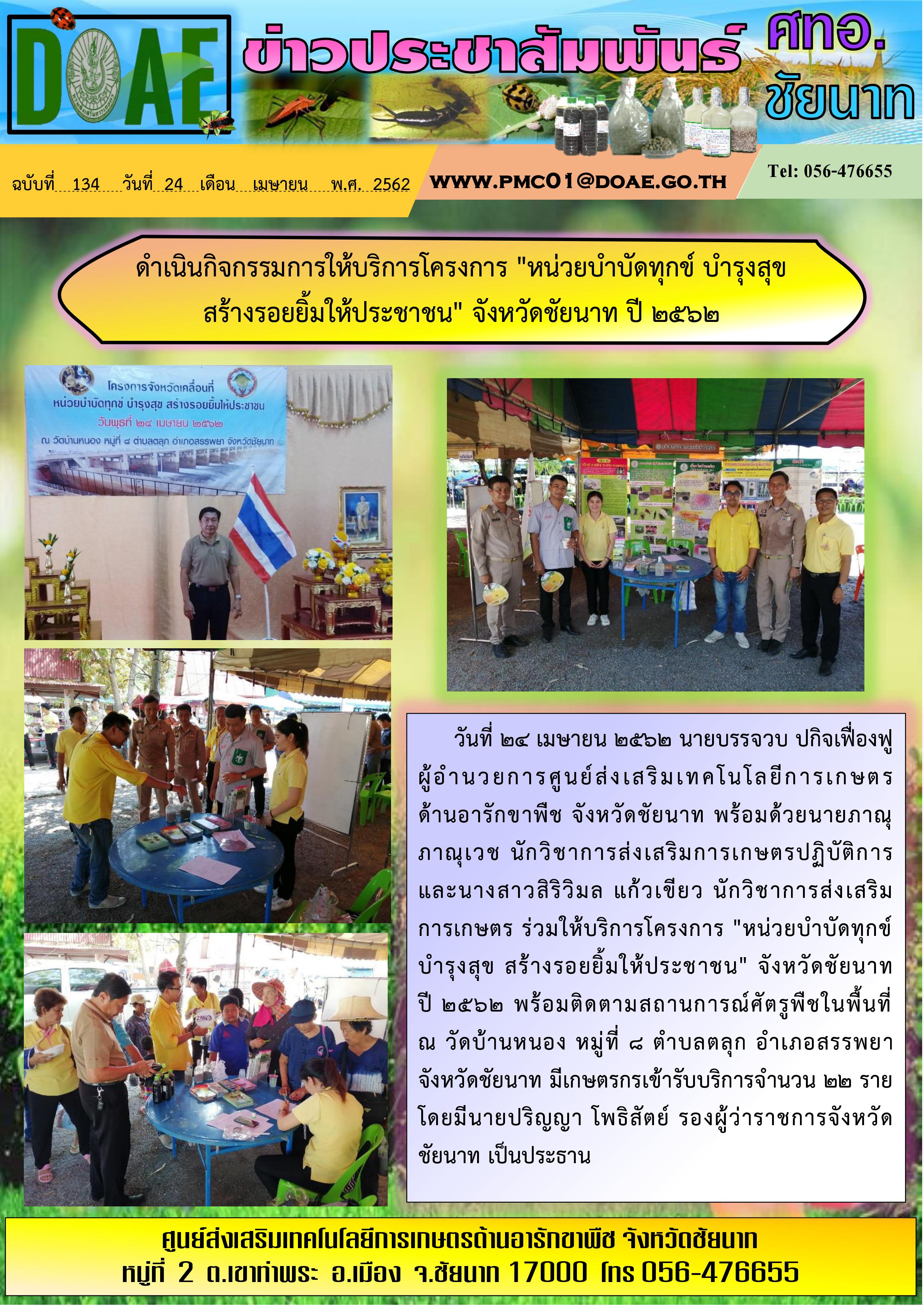 24-4-62 ดำเนินกิจกรรมการให้บริการโครงการ"หน่วยบำบัดทุกข์ บำรุงสุข สร้างรอยยิ้มให้ประชาชน" จังหวัดชัยนาท ปี 2562
