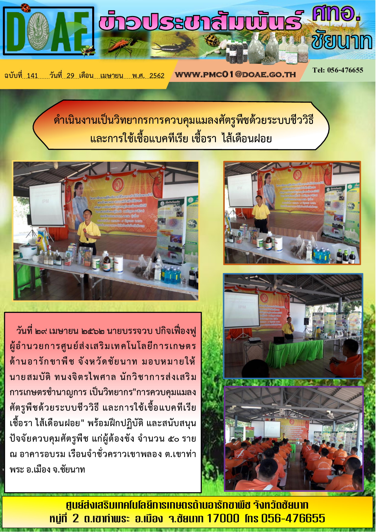 29-4-62 เป็นวิทยากรการควบคุมแมลงศัตรูพืช ด้วยระบบชีววิธี และการใช้เชื้อแบคทีเรีย เชื้อรา ไส้เดือนฝอย
