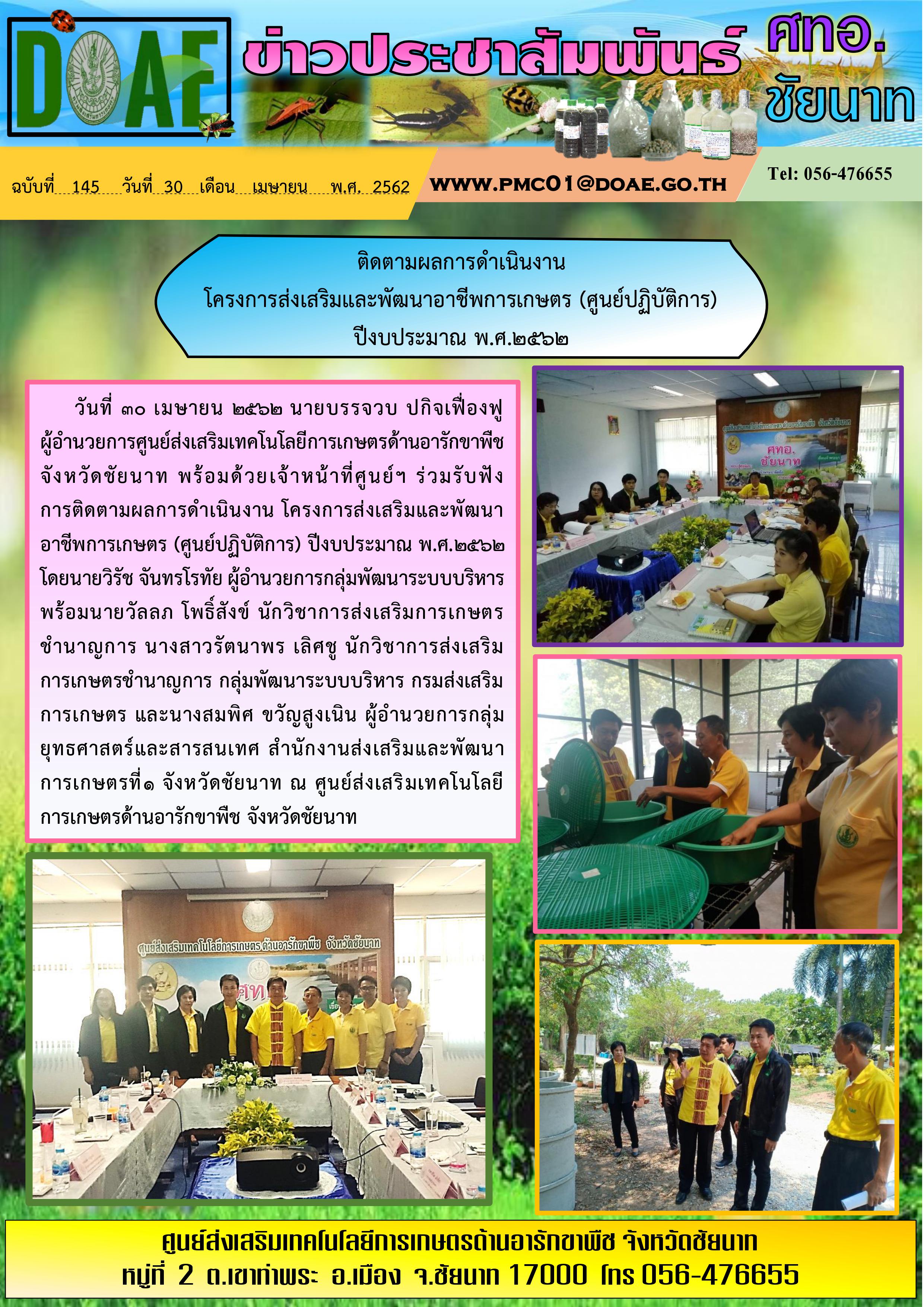30-4-62 ติดตามผลการดำเนินงานโครงการ ส่งเสริมและพัฒนาอาชีพการเกษตร (ศูนย์ปฏิบัติการ) ปีงบประมาณ พ.ศ.2562