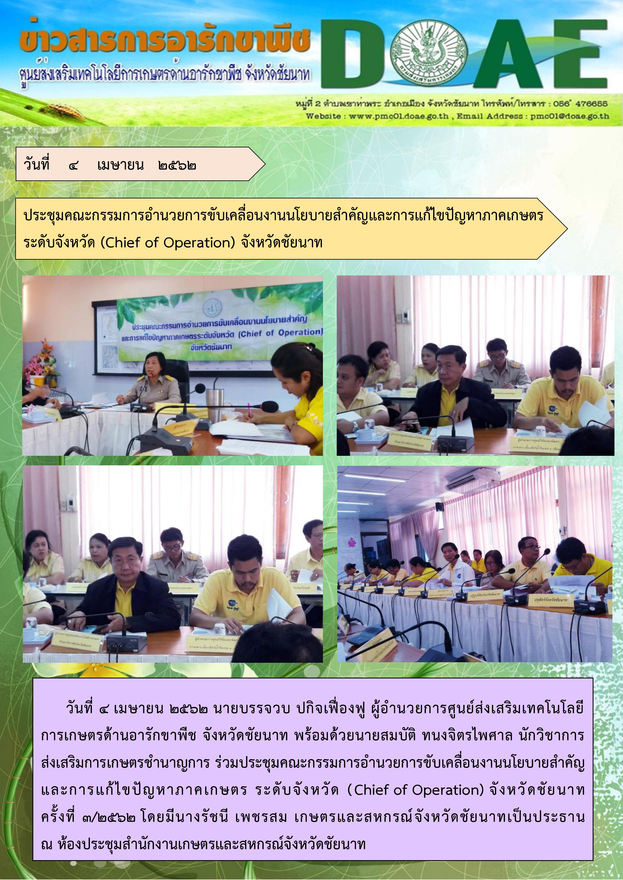 4-4-62 ประชุมคณะกรรมการอำนวยการขับเคลื่อน งานนโยบายสำคัญและการแก้ไขปัญหาภาคเกษตร ระดับจังหวัด (Chief of Operation) จังหวัดชัยนาท