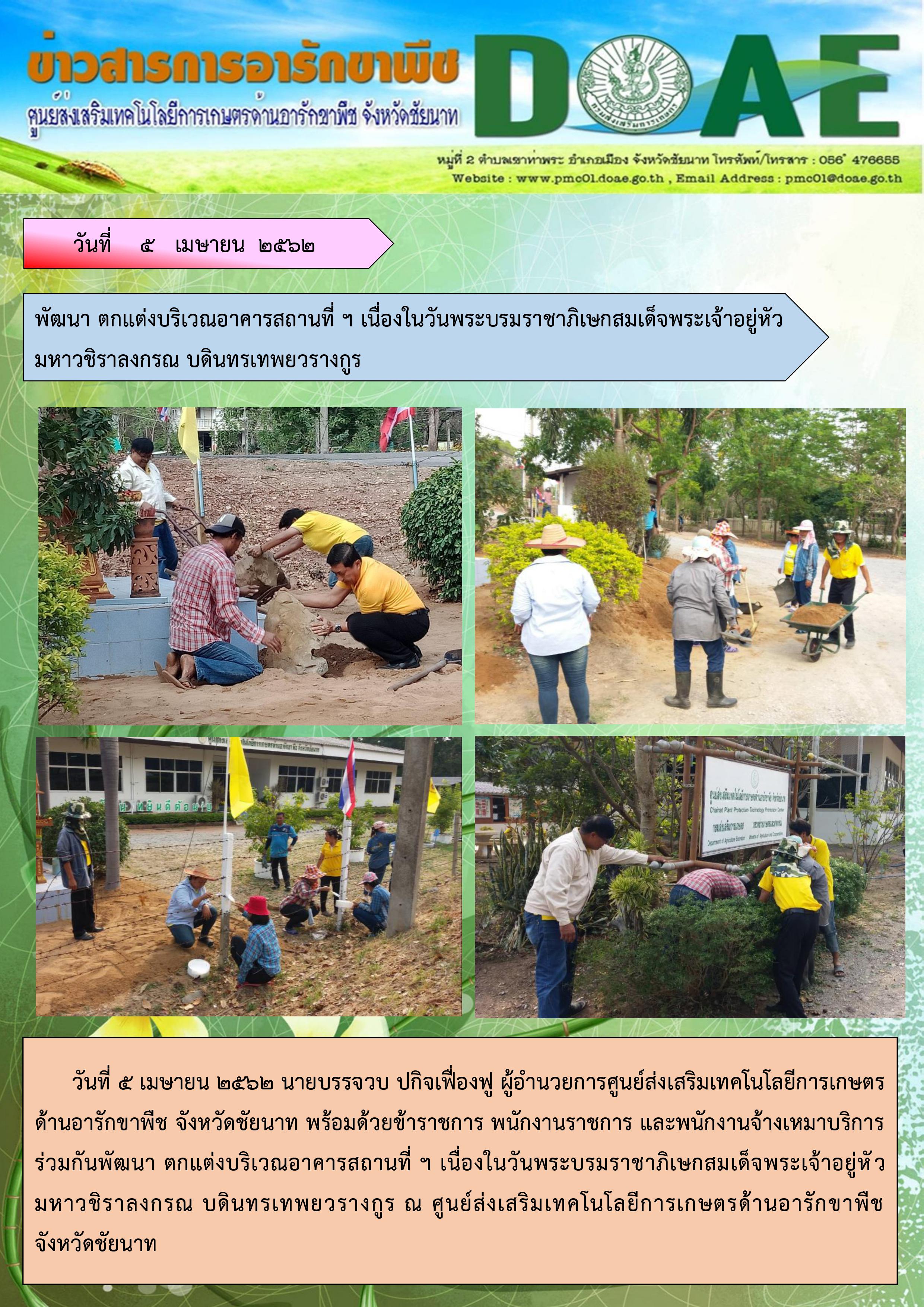 5-4-62 พัฒนา ตกแต่งบริเวณอาคารสถานที่ ฯ เนื่องในวันพระบรมราชาภิเษกสมเด็จพระเจ้าอยู่หัว มหาวชิราลงกรณ บดินทรเทพยวรางกูร