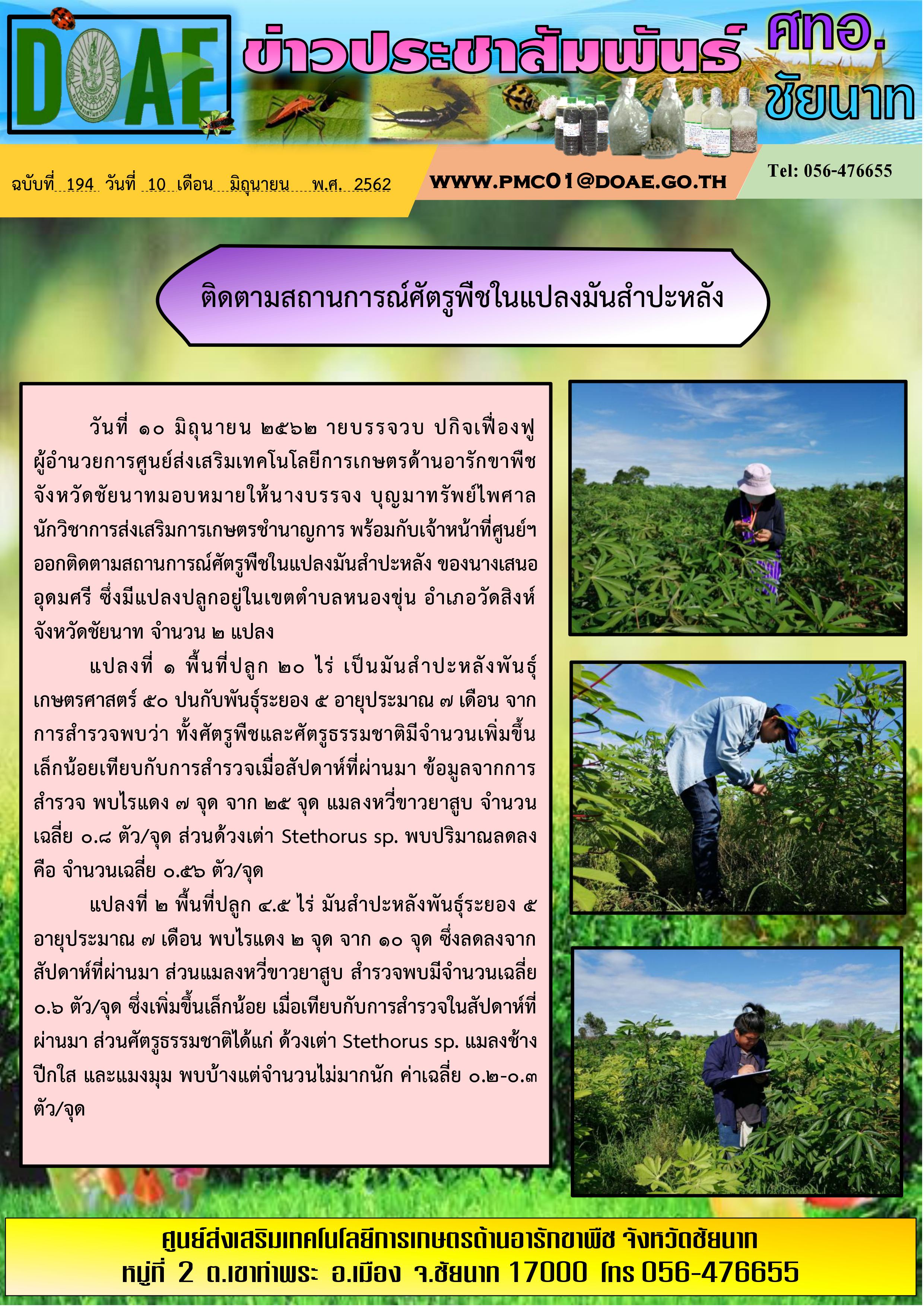 25-6-62 ติดตามสถานการณ์ไรแดงมันสำปะหลัง