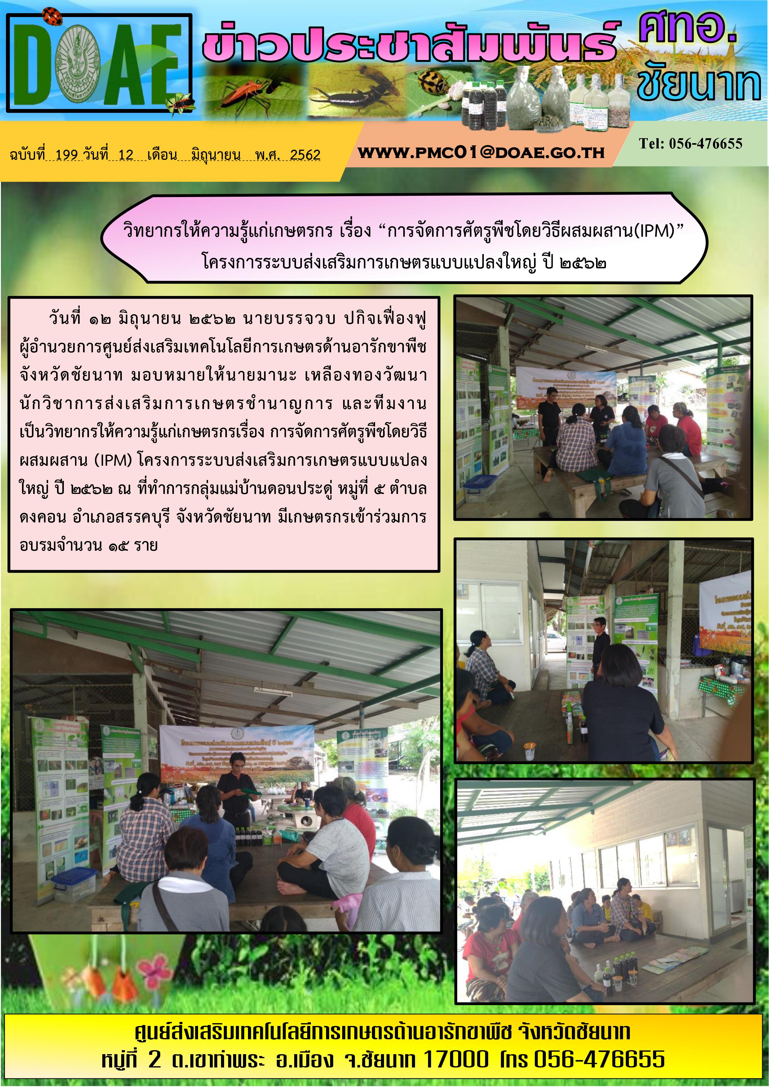 12-6-62 วิทยากรถ่ายทอดความรู้เรื่องการป้องกัน และกำจัดศัตรูพืชโดยวิธีผสมผสาน โครงการระบบส่งเสริมการเกษตร แบบแปลงใหญ่ ปี 2562