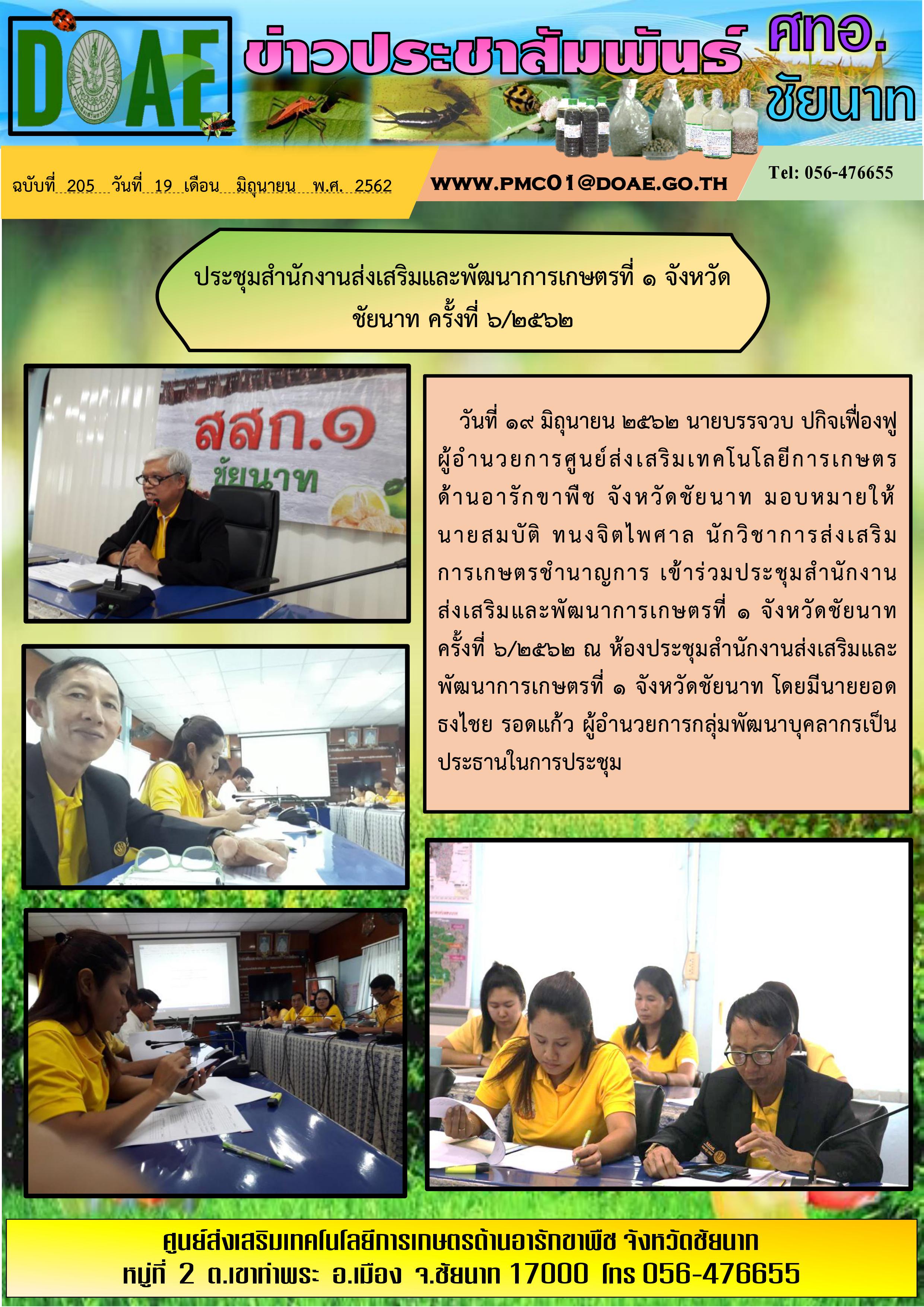 19-6-62 ประชุมสำนักงานส่งเสริมและพัฒนาการเกษตรที่ 1 จังหวัดชัยนาท ครั้งที่ 6/2562