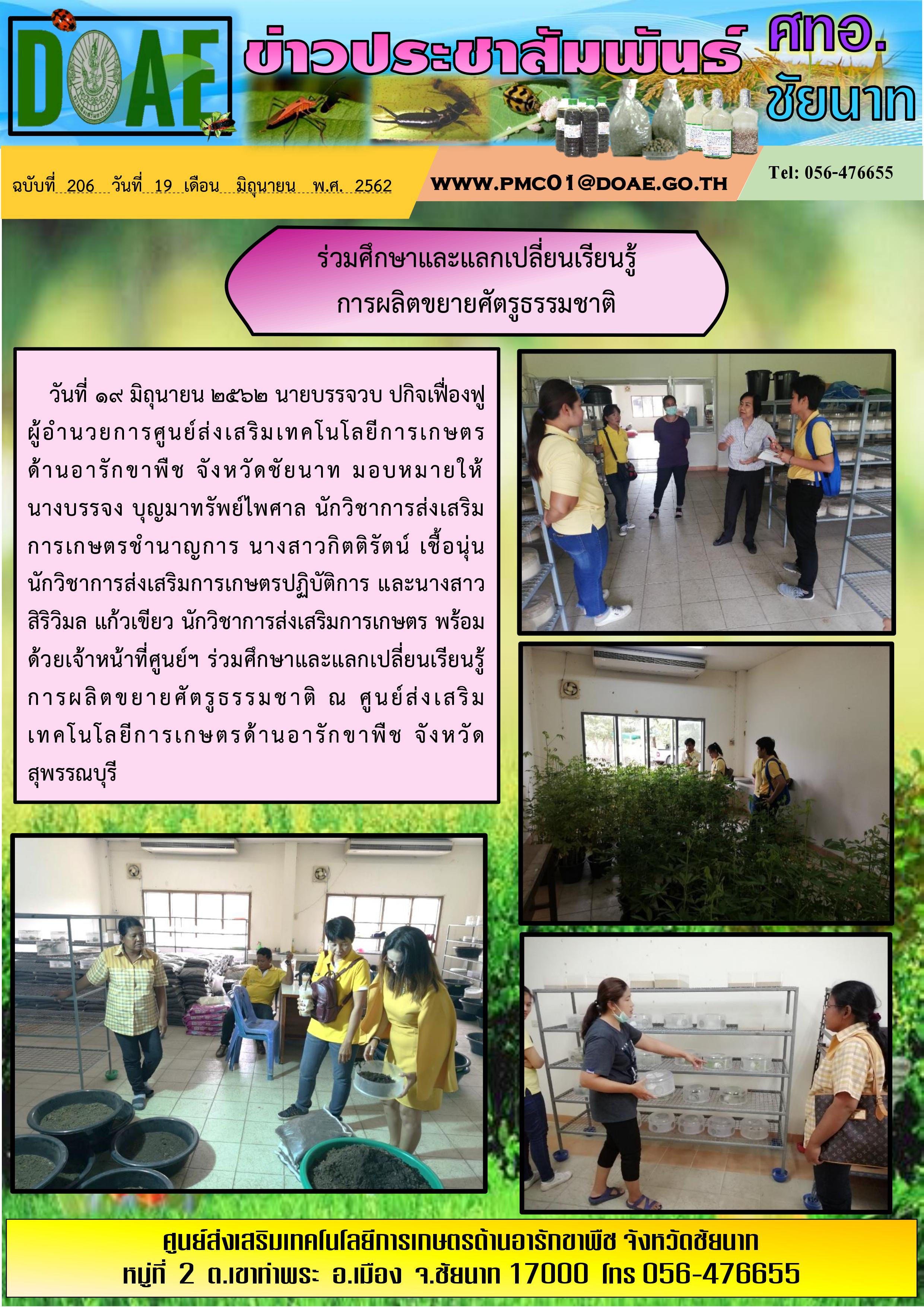 19-6-62 ร่วมศึกษาและแลกเปลี่ยนเรียนรู้ การผลิตขยายศัตรูธรรมชาติ ศทอ.สุพรรณบุรี