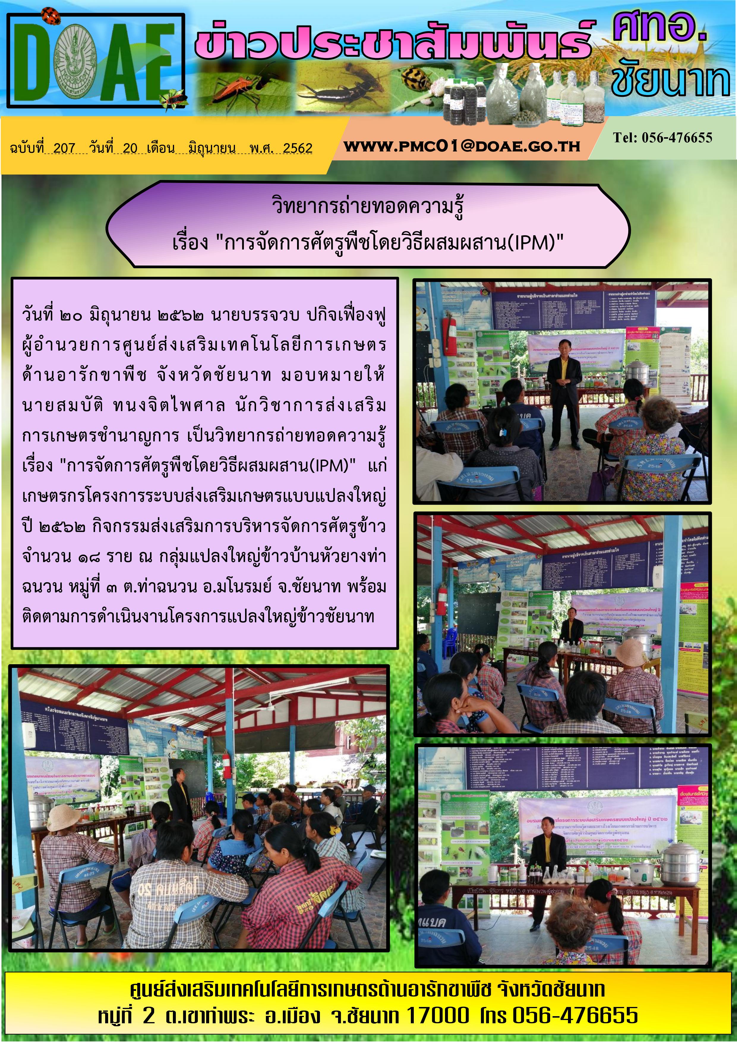 20-6-62 วิทยากรถ่ายทอดความรู้ เรื่อง "การจัดการศัตรูพืชโดยวิธีผสมผสาน(IPM)"