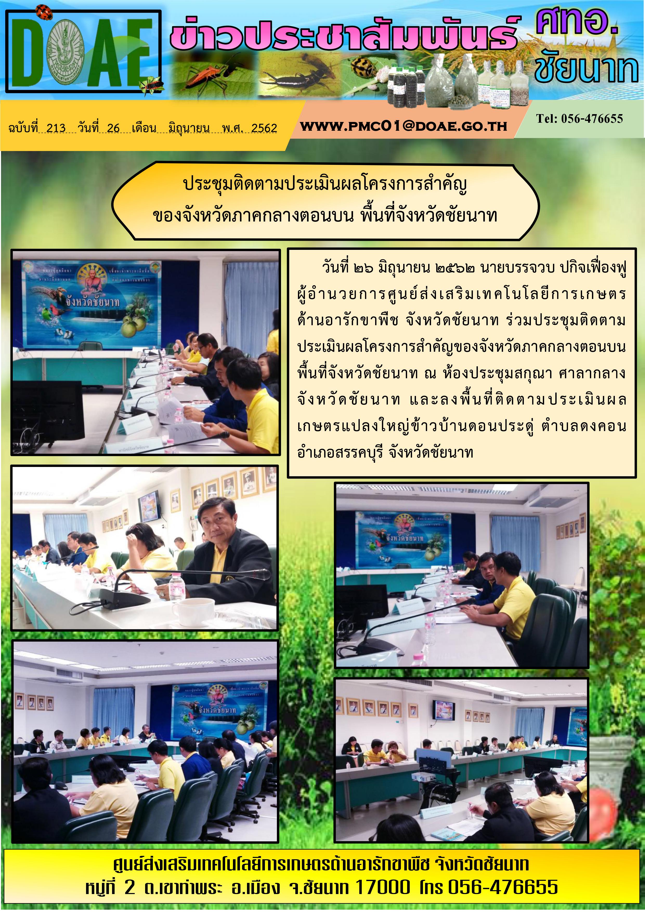 26-6-62 ประชุมติดตามประเมินผลโครงการสำคัญ ของจังหวัดภาคกลางตอนบน พื้นที่จังหวัดชัยนาท