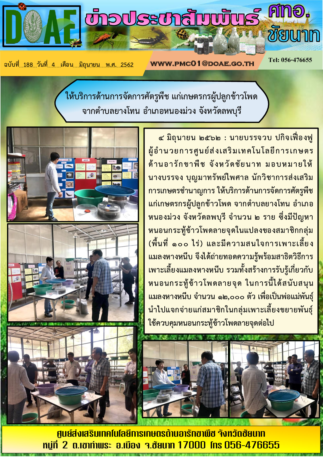 4-6-62 ให้บริการด้านการจัดการศัตรูพืช แก่เกษตรกรผู้ปลูกข้าวโพด จากตำบลยางโทน อำเภอหนองม่วง จังหวัดลพบุรี