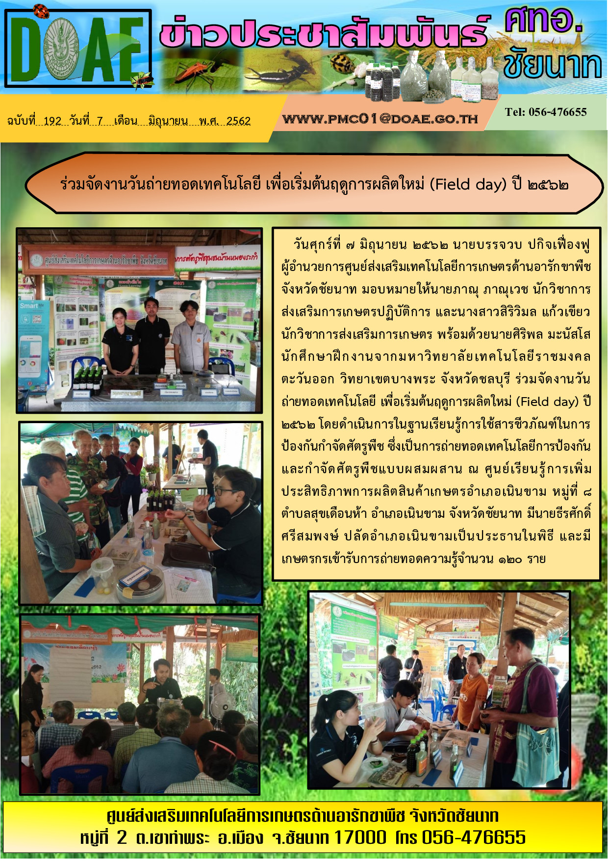 7-6-62 ร่วมจัดงานวันถ่ายทอดเทคโนโลยี เพื่อเริ่มต้นฤดูการผลิตใหม่ (Field day) ปี 2562