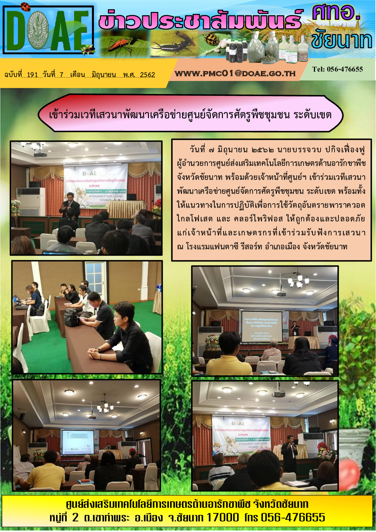 7-6-62 เข้าร่วมเวทีเสวนาพัฒนาเครือข่าย ศูนย์จัดการศัตรูพืชชุมชน ระดับเขต