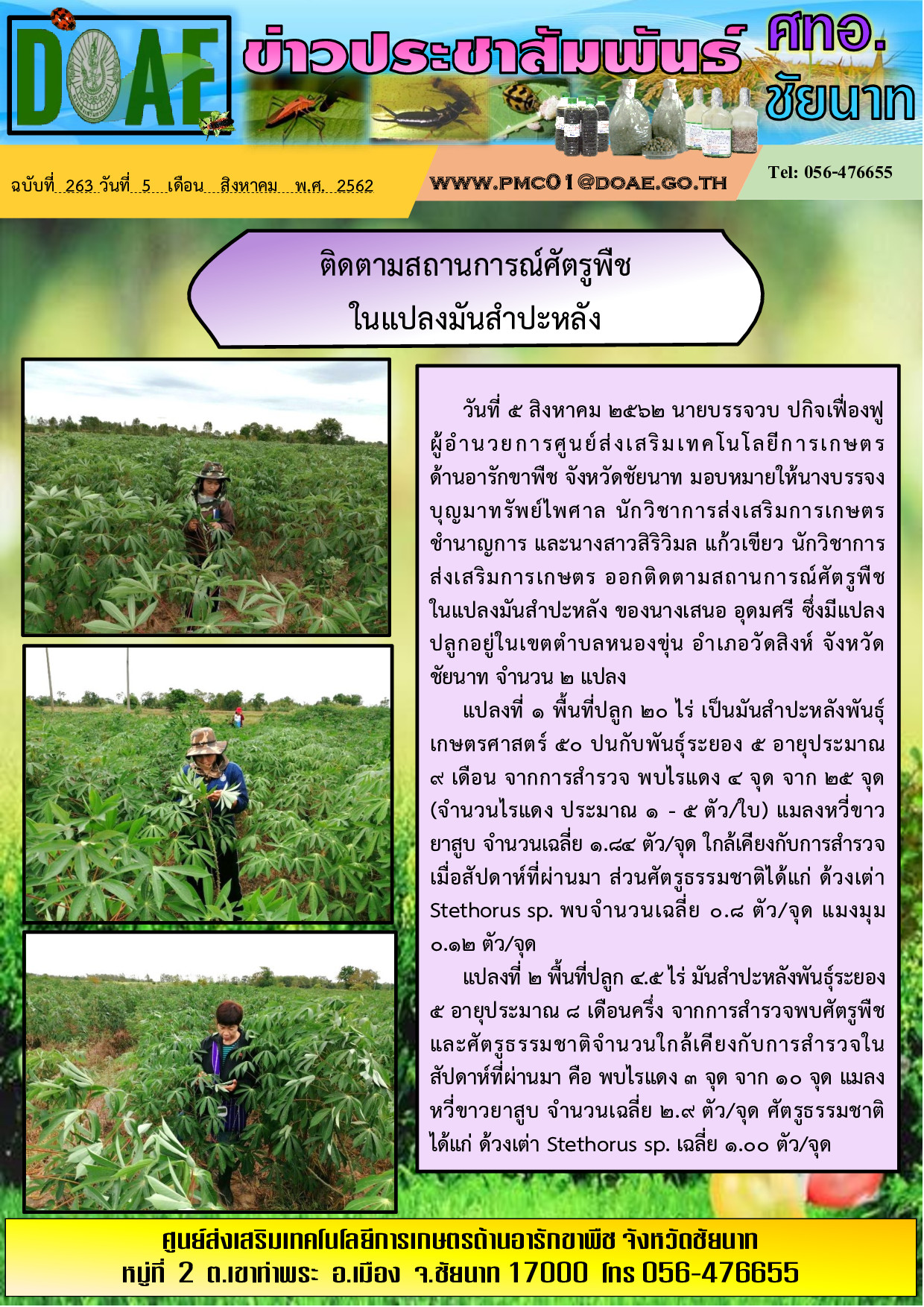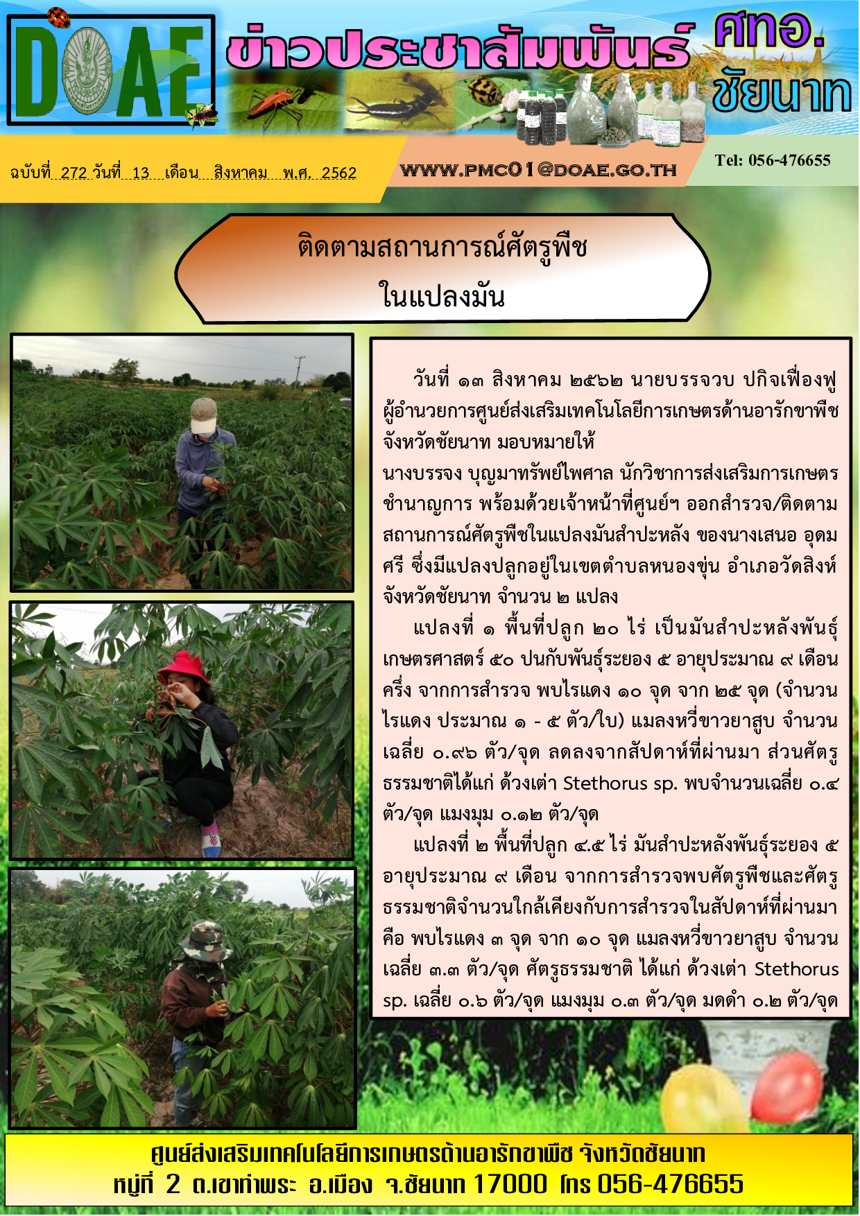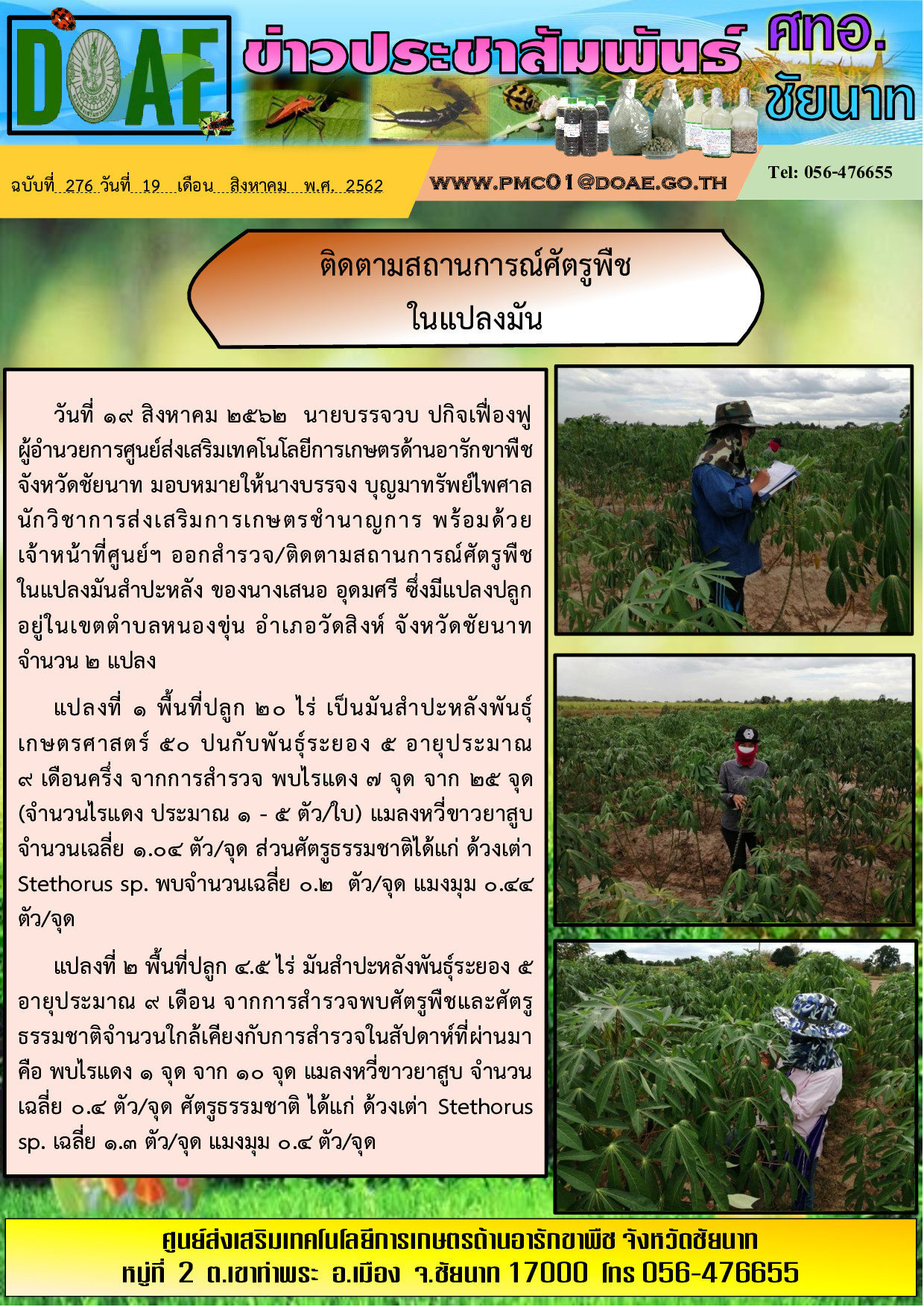 19-8-62 ติดตามสถานการณ์ศัตรูพืช ในแปลงมันสำปะหลัง
