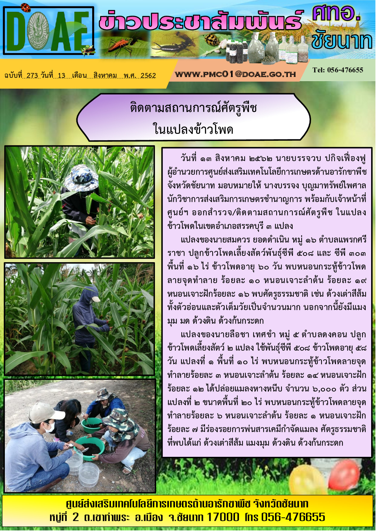 13-8-62 ติดตามสถานการณ์ศัตรูพืชในแปลงข้าวโพด