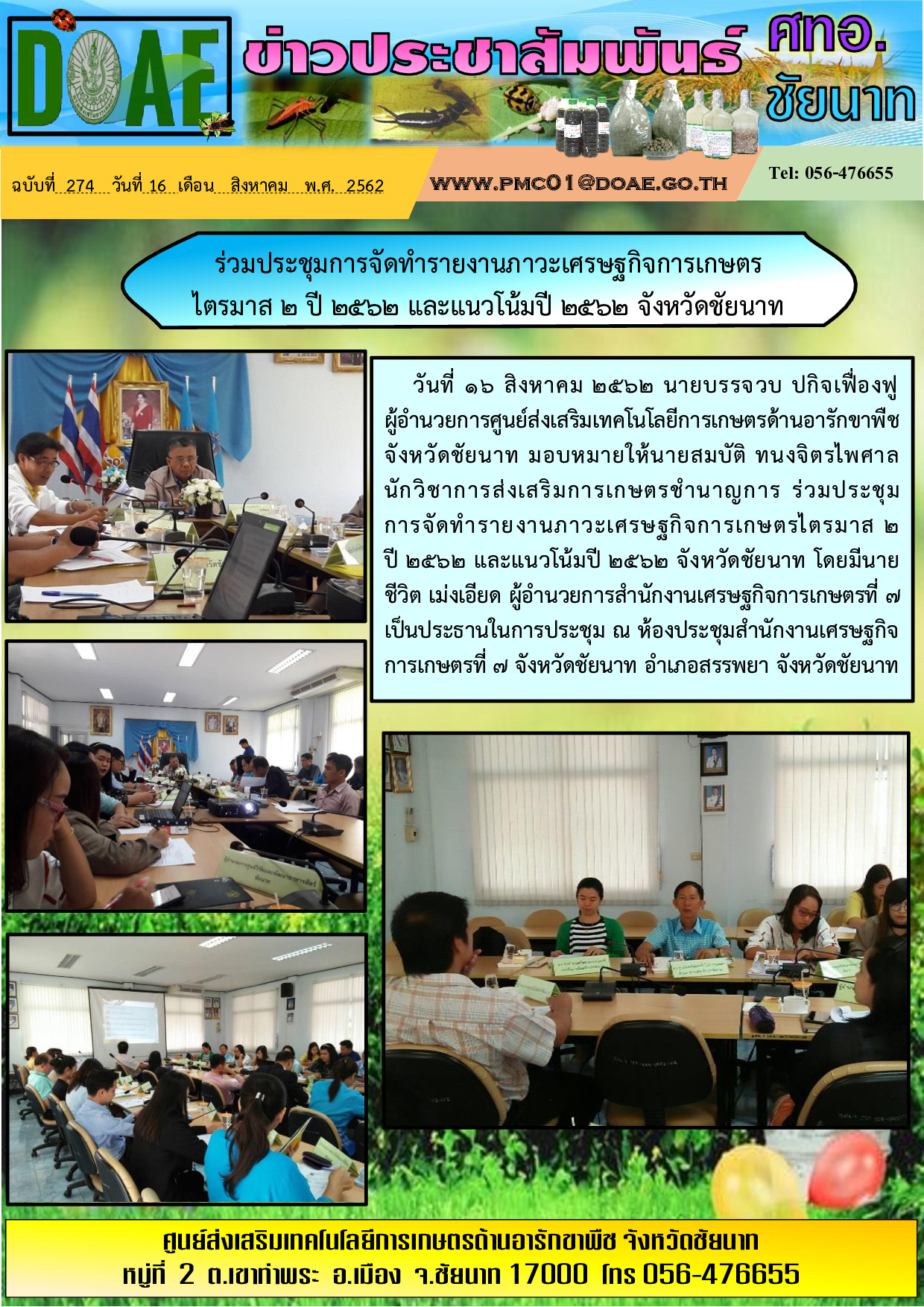 16-8-62 ร่วมประชุมการจัดทำรายงาน ภาวะเศรษฐกิจการเกษตรไตรมาส 2 ปี 2562 และแนวโน้มปี 2562 จังหวัดชัยนาท