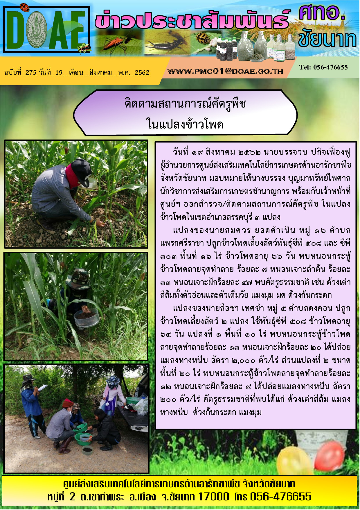 19-8-62 ติดตามสถานการณ์ศัตรูพืชในแปลงข้าวโพด