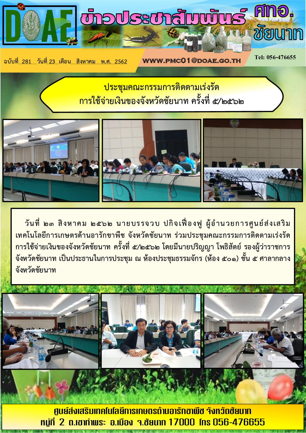 23-8-62 ประชุมคณะกรรมการติดตามเร่งรัด การใช้จ่ายเงินของจังหวัดชัยนาท ครั้งที่ 5/2562
