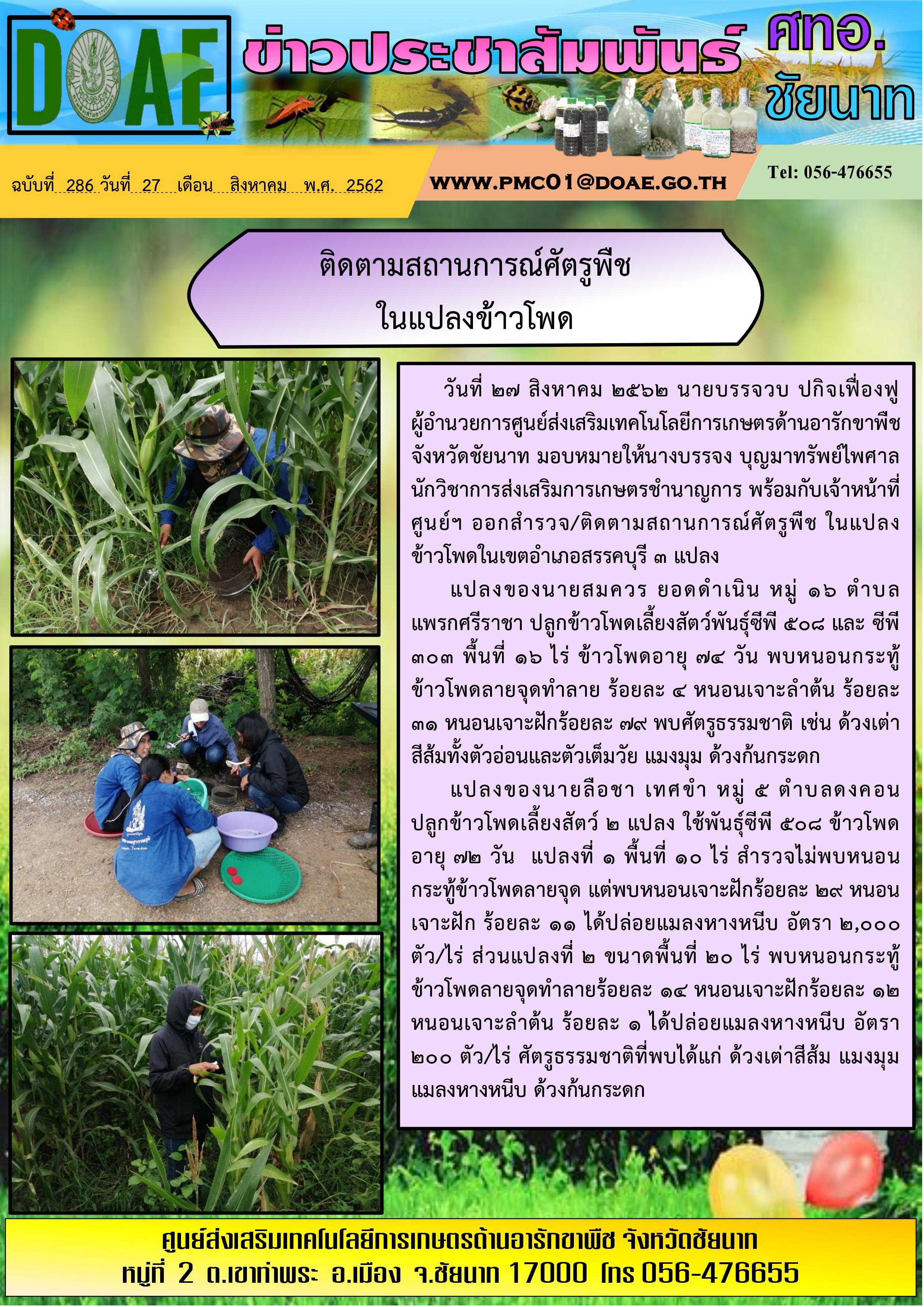 27-8-62 ติดตามสถานการณ์ศัตรูพืชในแปลงข้าวโพด