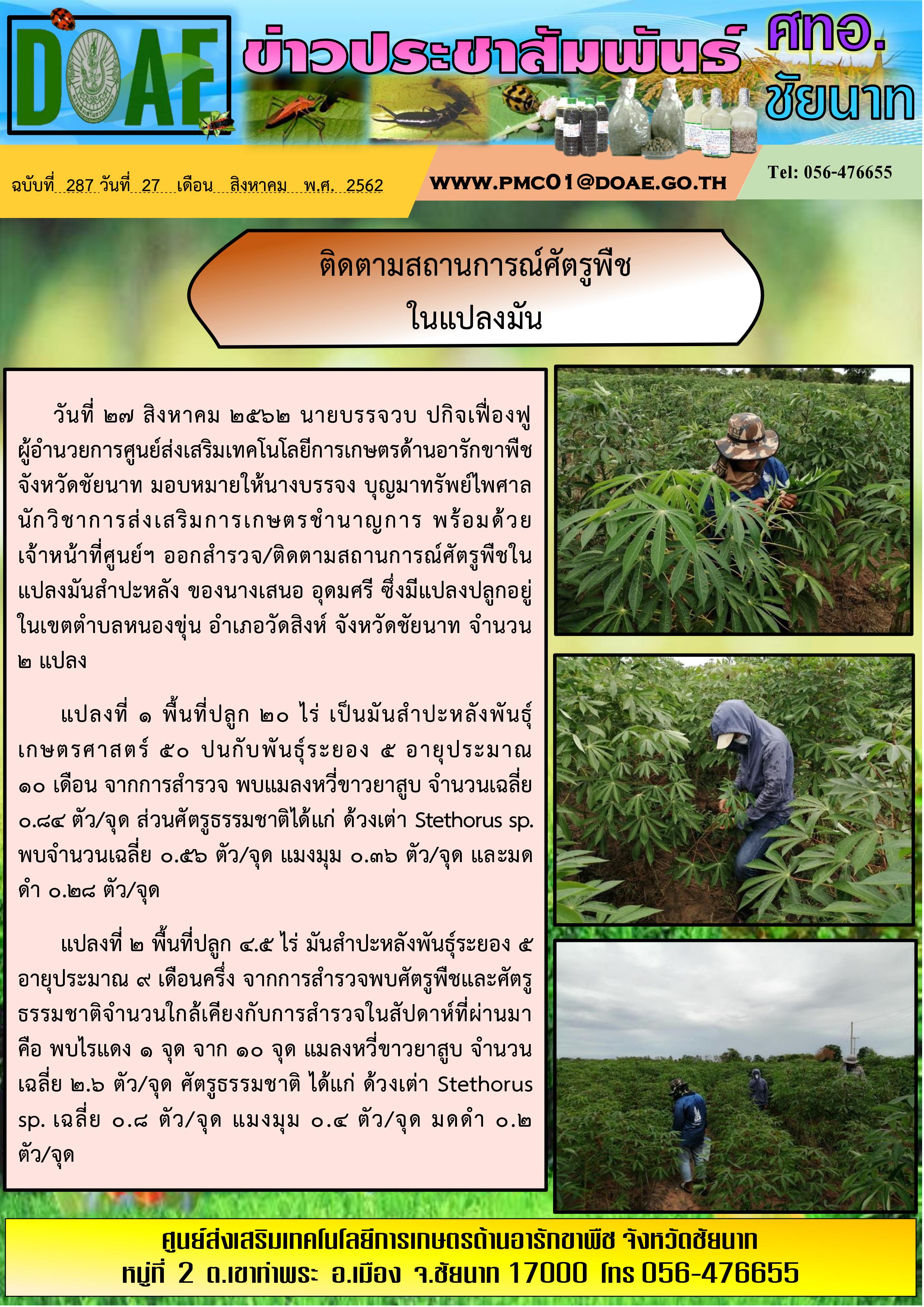 27-8-62 ติดตามสถานการณ์ศัตรูพืชในแปลงมันสำปะหลัง