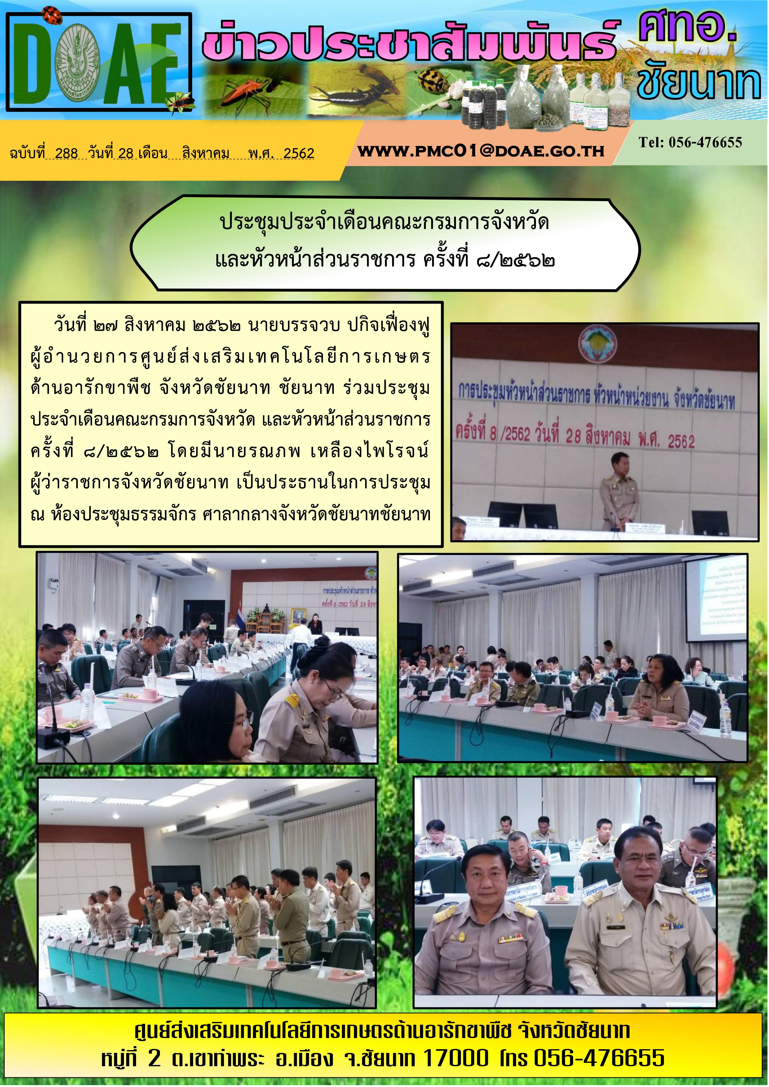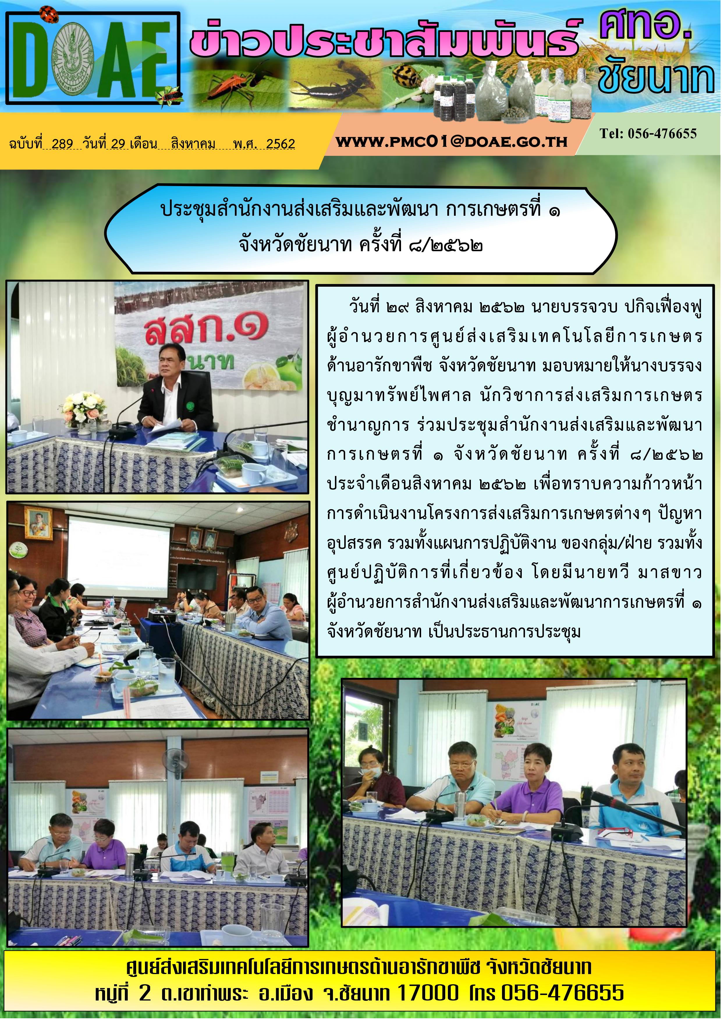 29-8-62 ประชุมสำนักงานส่งเสริมและพัฒนา การเกษตรที่ 1จังหวัดชัยนาท ครั้งที่ 8/2562