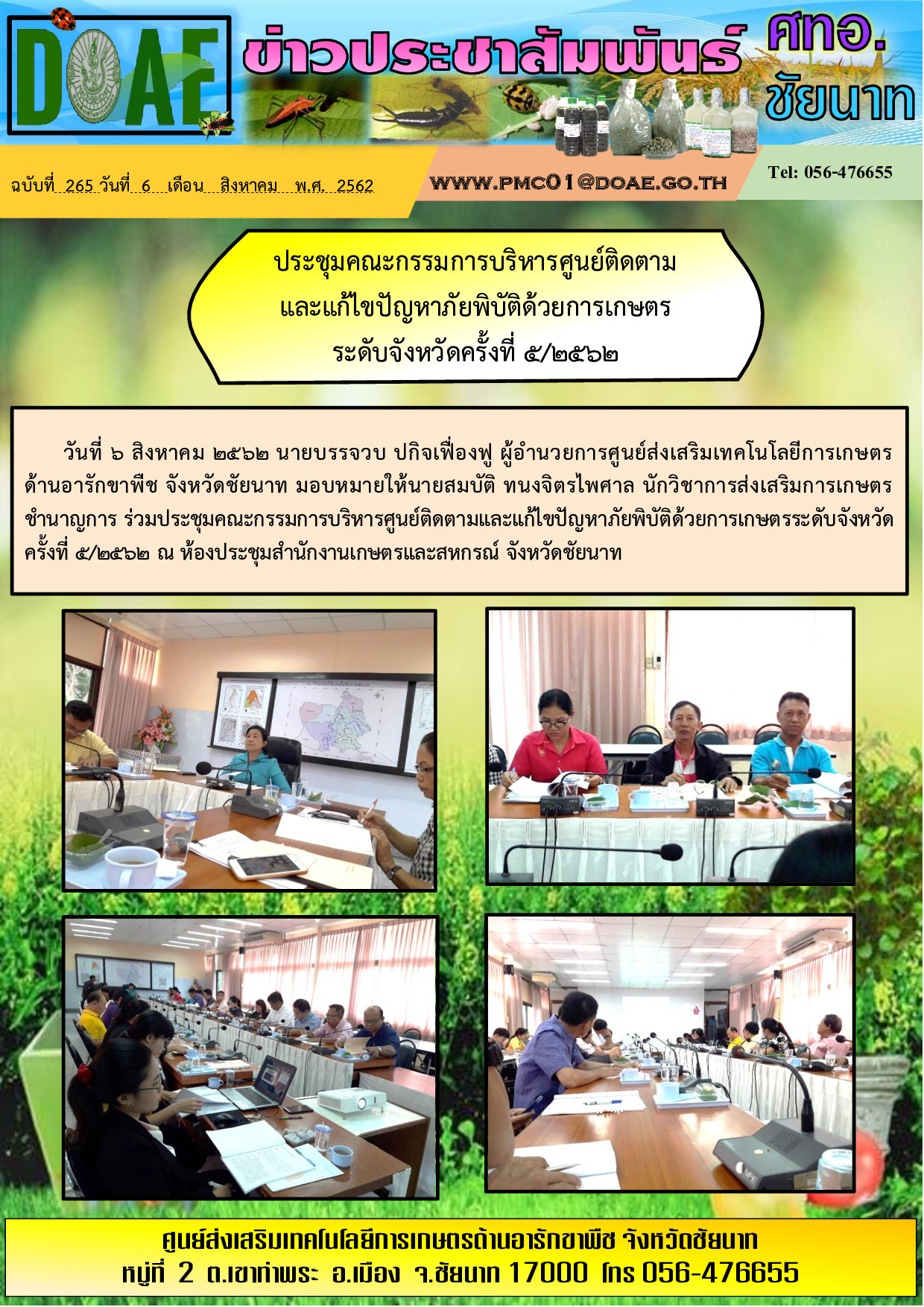 6-8-62 ประชุมคณะกรรมการบริหารศูนย์ติดตาม และแก้ไขปัญหาภัยพิบัติด้วยการเกษตร ระดับจังหวัดครั้งที่ 5/2562