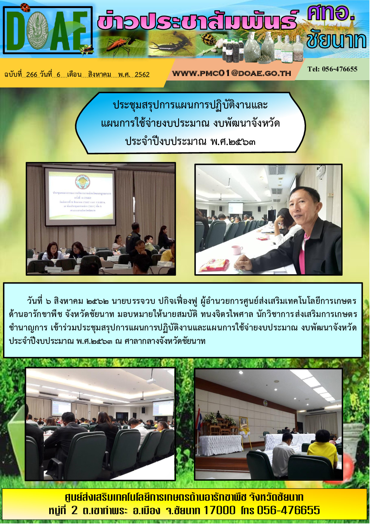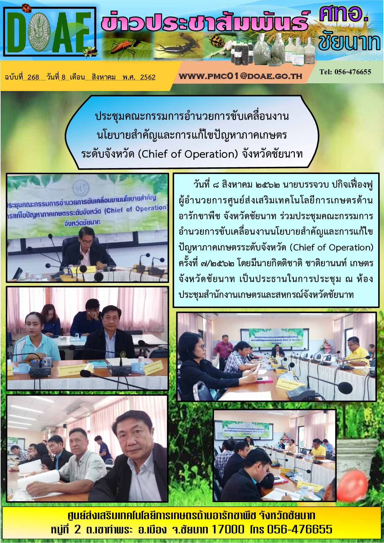 8-8-62 ประชุมคณะกรรมการอำนวยการขับเคลื่อนงาน นโยบายสำคัญและการแก้ไขปัญหาภาคเกษตร ระดับจังหวัด (Chief of Operation) จังหวัดชัยนาท