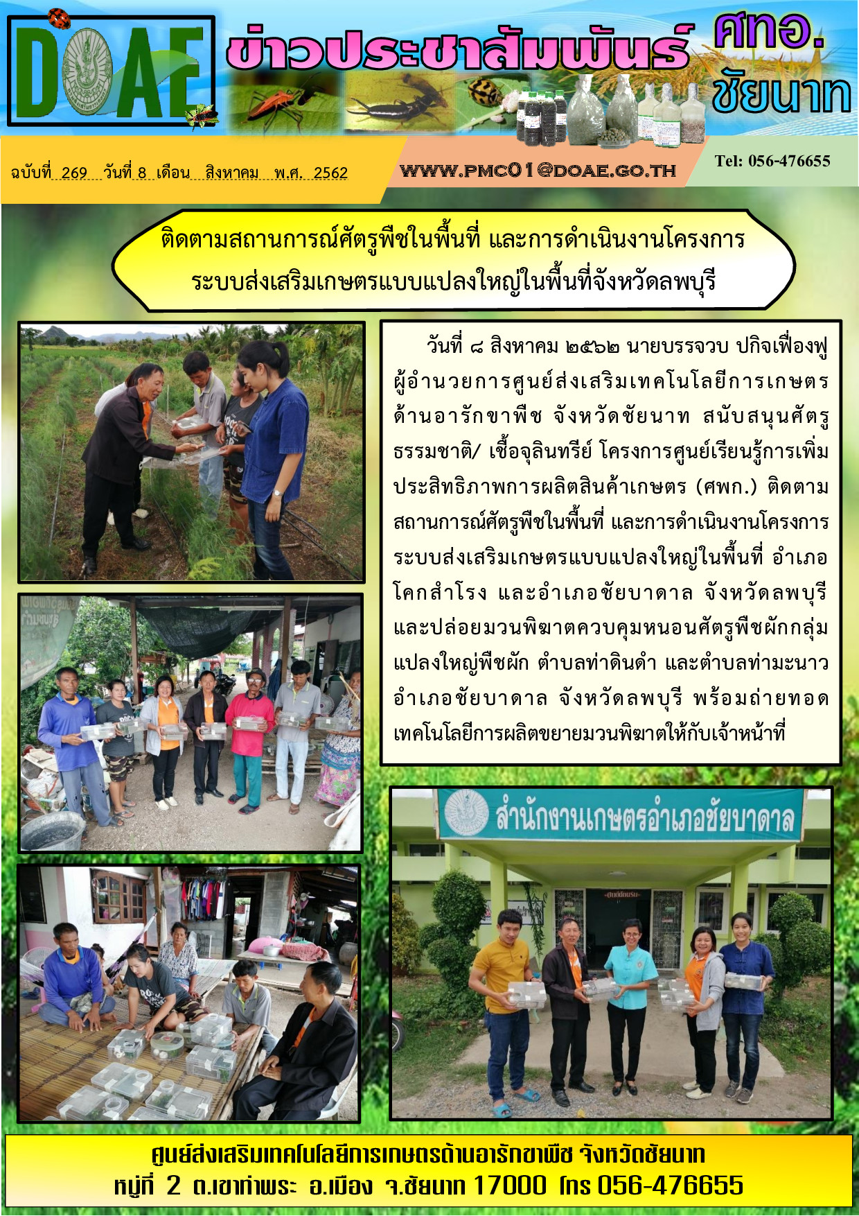 8-8-62 ติดตามสถานการณ์ศัตรูพืชในพื้นที่ และการดำเนินงาน โครงการระบบส่งเสริมเกษตร แบบแปลงใหญ่ ในพื้นที่จังหวัดลพบุรี