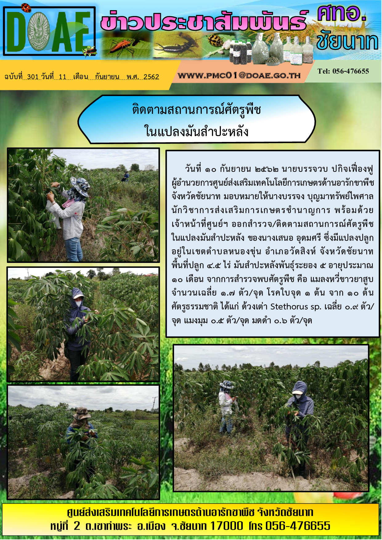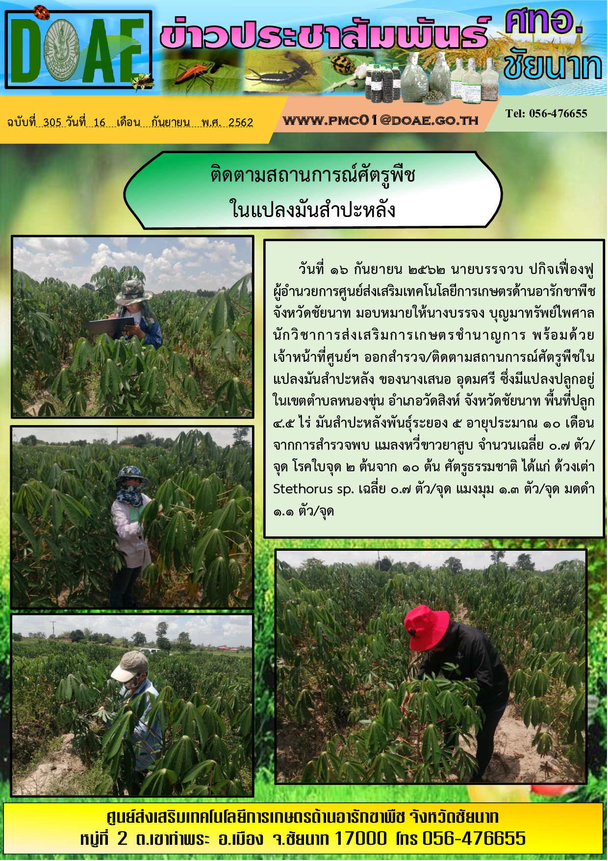 16-9-62 ติดตามสถานการณ์ศัตรูพืชในแปลงมันสำปะหลัง