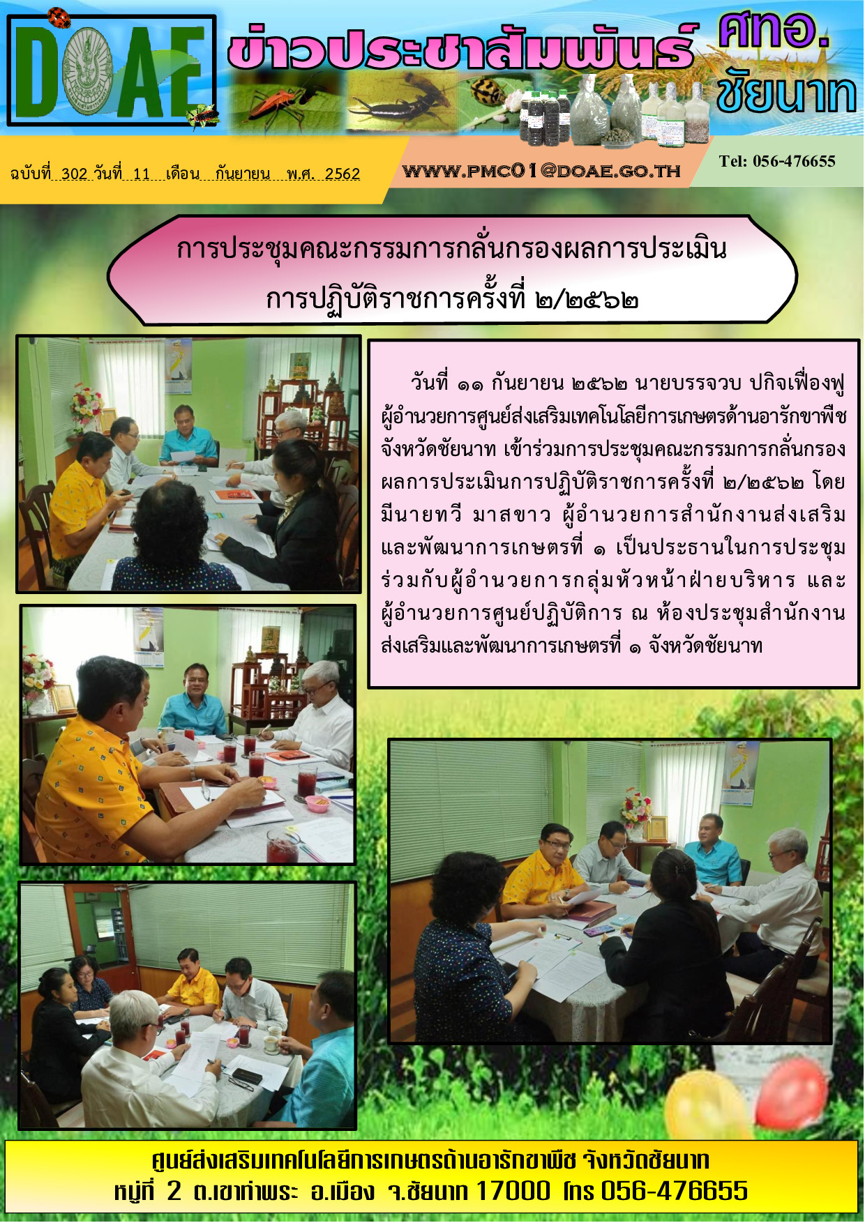 24-9-62 ประชุมสำนักงานส่งเสริมและพัฒนา การเกษตรที่ 1จังหวัดชัยนาท ครั้งที่ 9/2562
