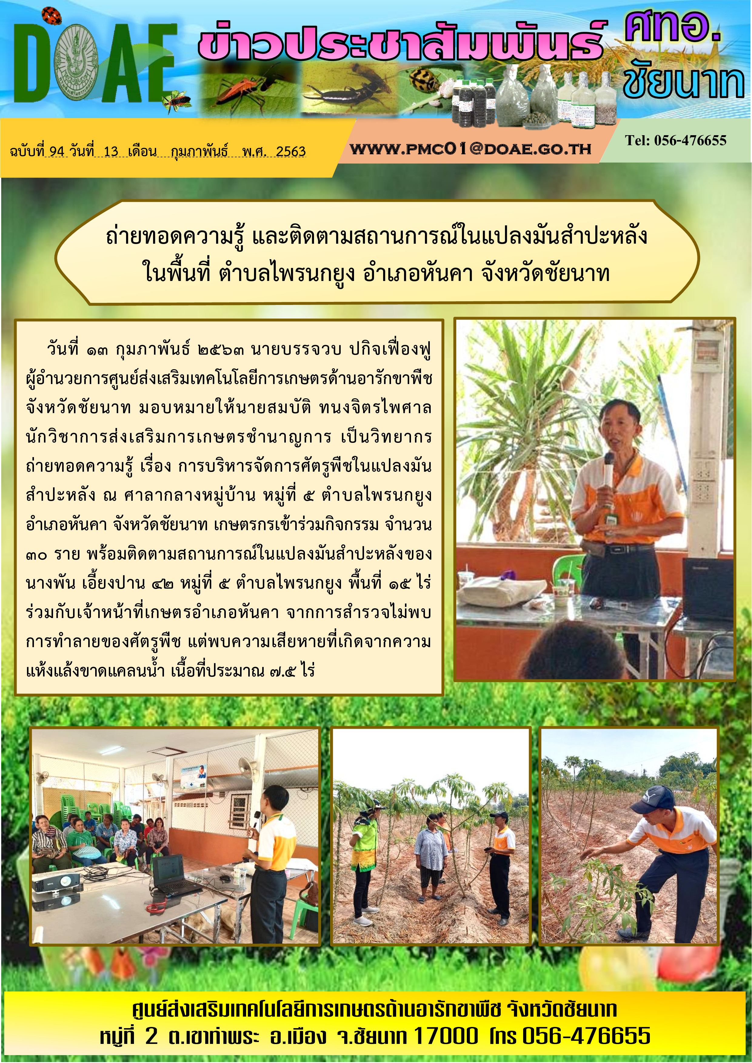 13-2-63 ฉบับที่ 94 ถ่ายทอดความรู้ และติดตามสถานการณ์ในแปลงมันสำปะหลัง