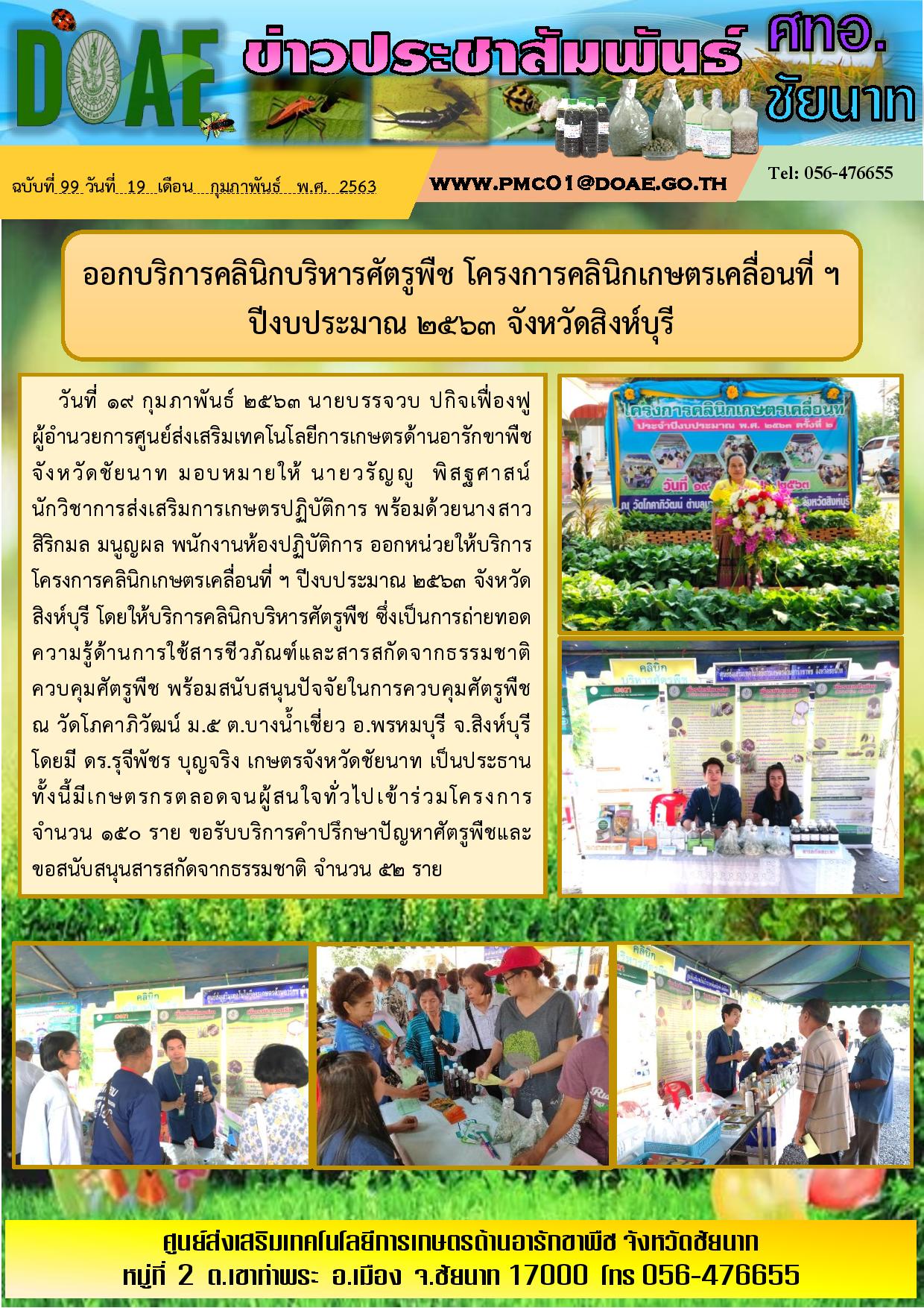 19-2-63 ฉบับที่ 99 ให้บริการโครงการคลินิกเกษตรเคลื่อนที่ จ.สิงห์บุรี