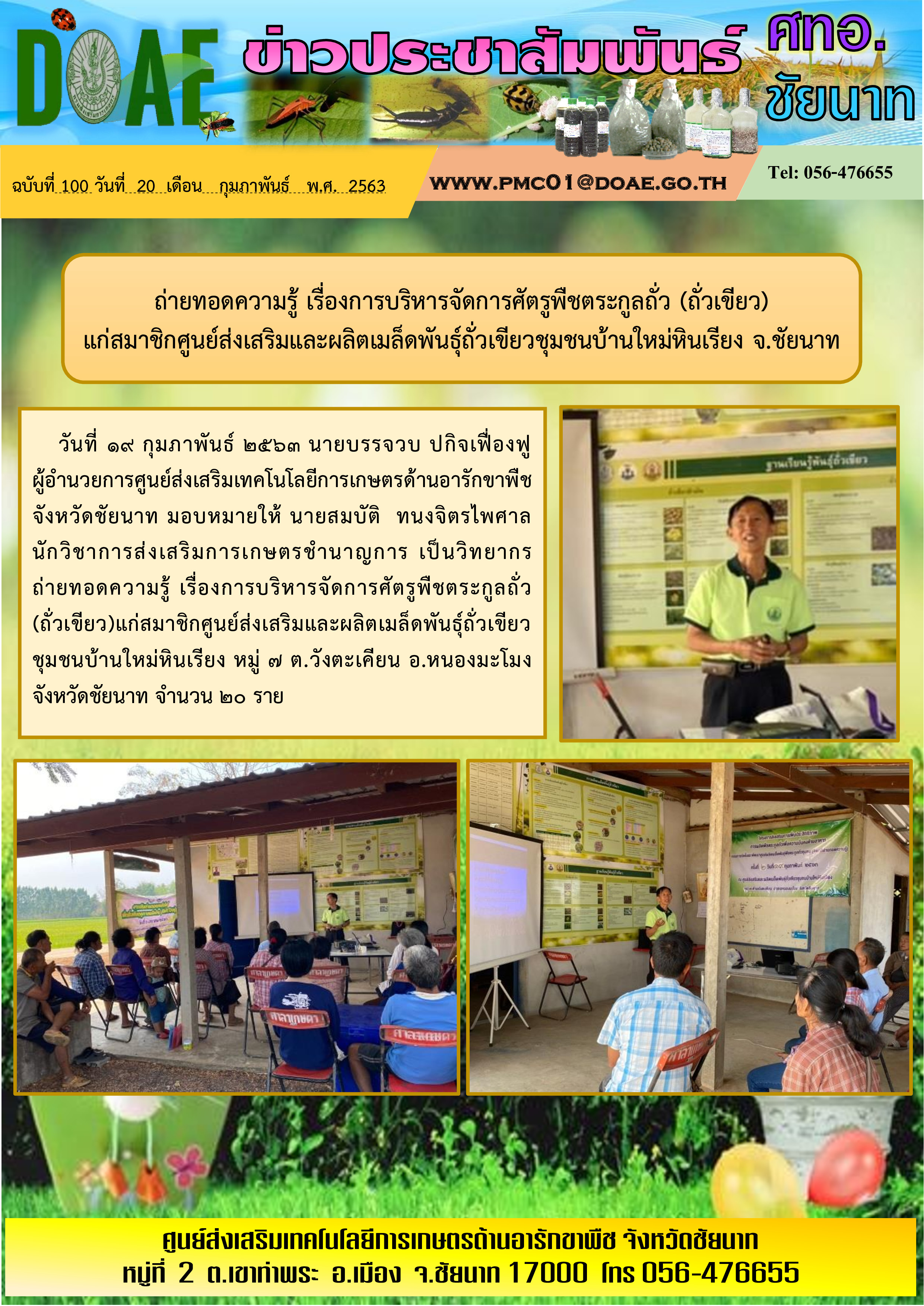 20-2-63 ฉบับที่ 100 ถ่ายทอดความรู้ศัตรูพืชตระกูลถั่ว ชัยนาท