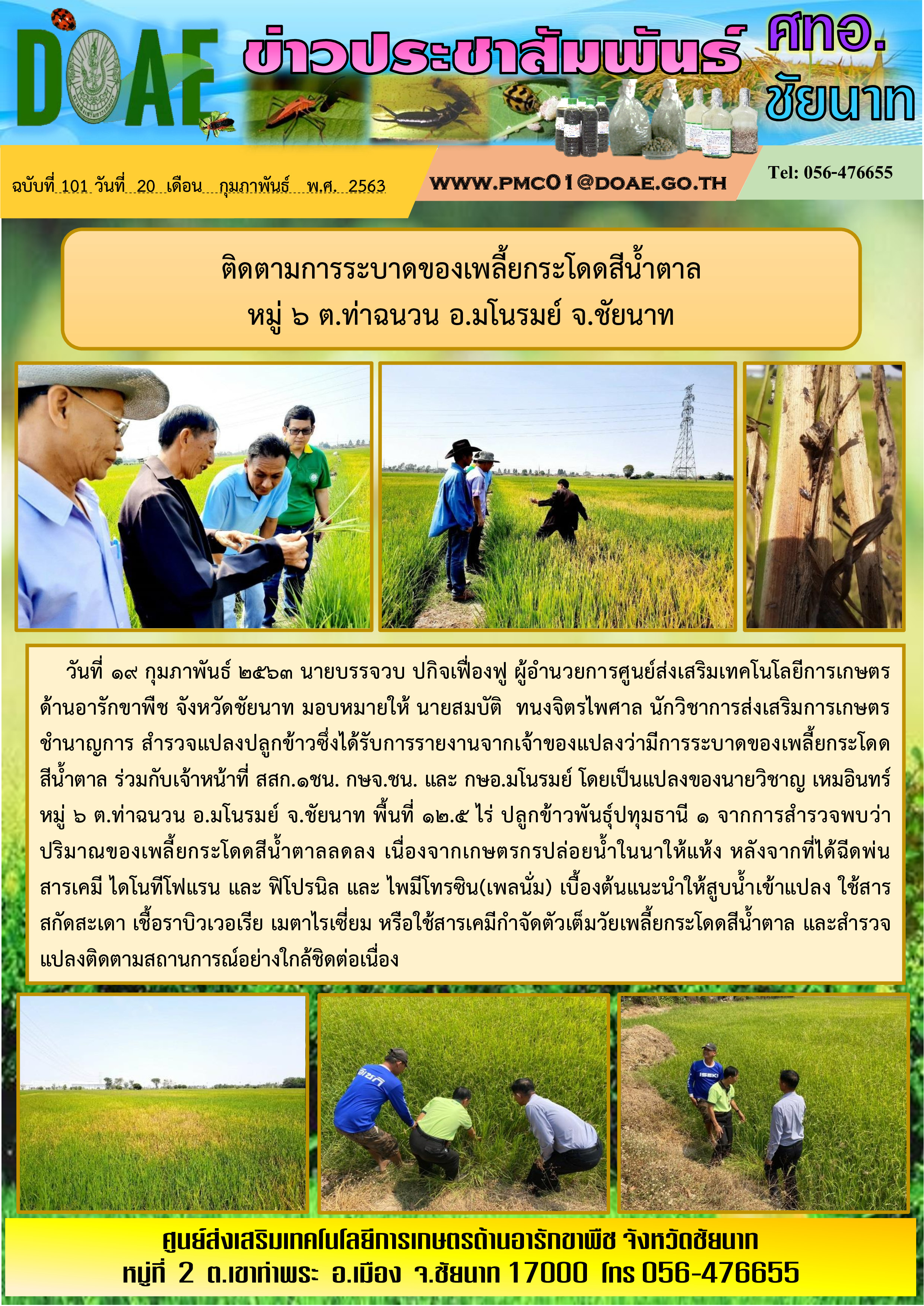 20-2-63 ฉบับที่ 101 ติดตามการระบาดของเพลี้ยกระโดดสีน้ำตาล ชัยนาท
