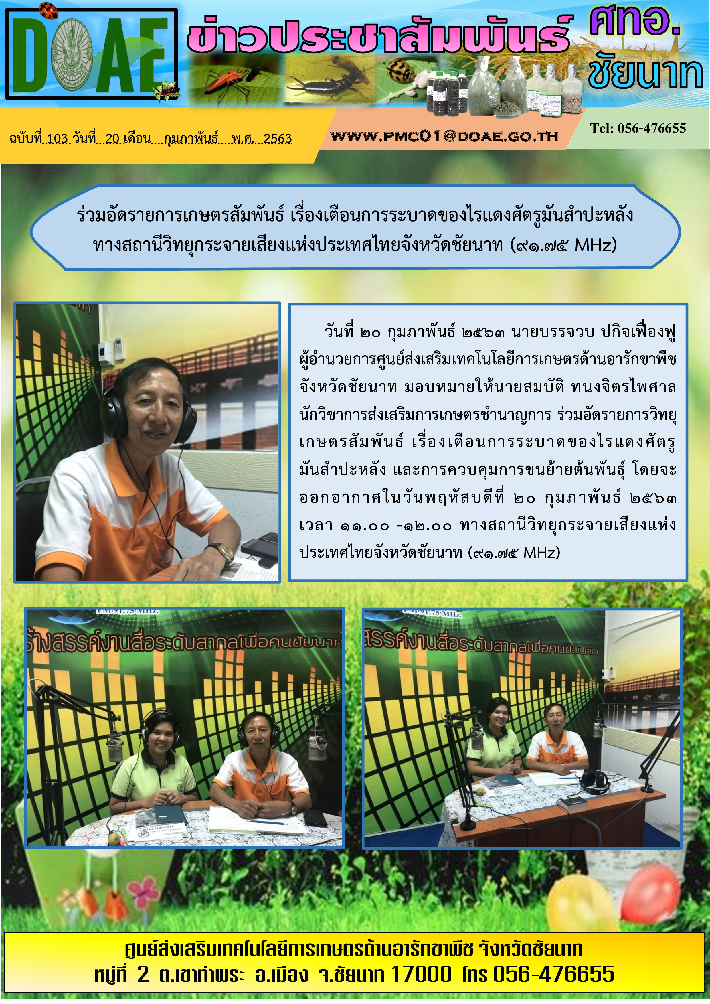 20-2-63 ฉบับที่ 103 ร่วมอัดรายการ เกษตรสัมพันธ์เรื่องเตือนการระบาด ของไรแดงศัตรูมันสำปะหลัง