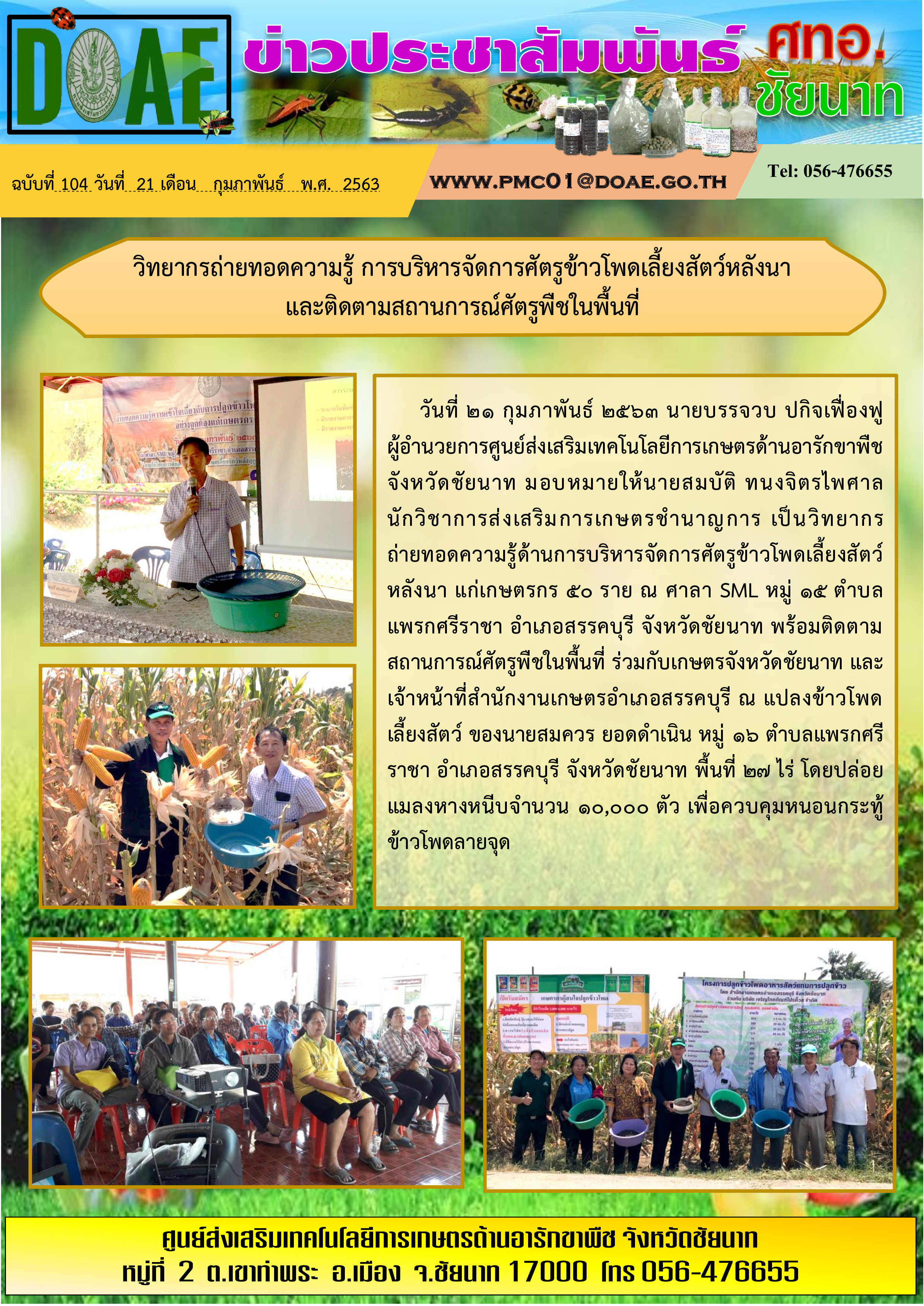 21-2-63 ฉบับที่ 104 ถ่ายทอดความรู้ การบริหารจัดการศัตรูข้าวโพด เลี้ยงสัตว์หลังนา ชัยนาท