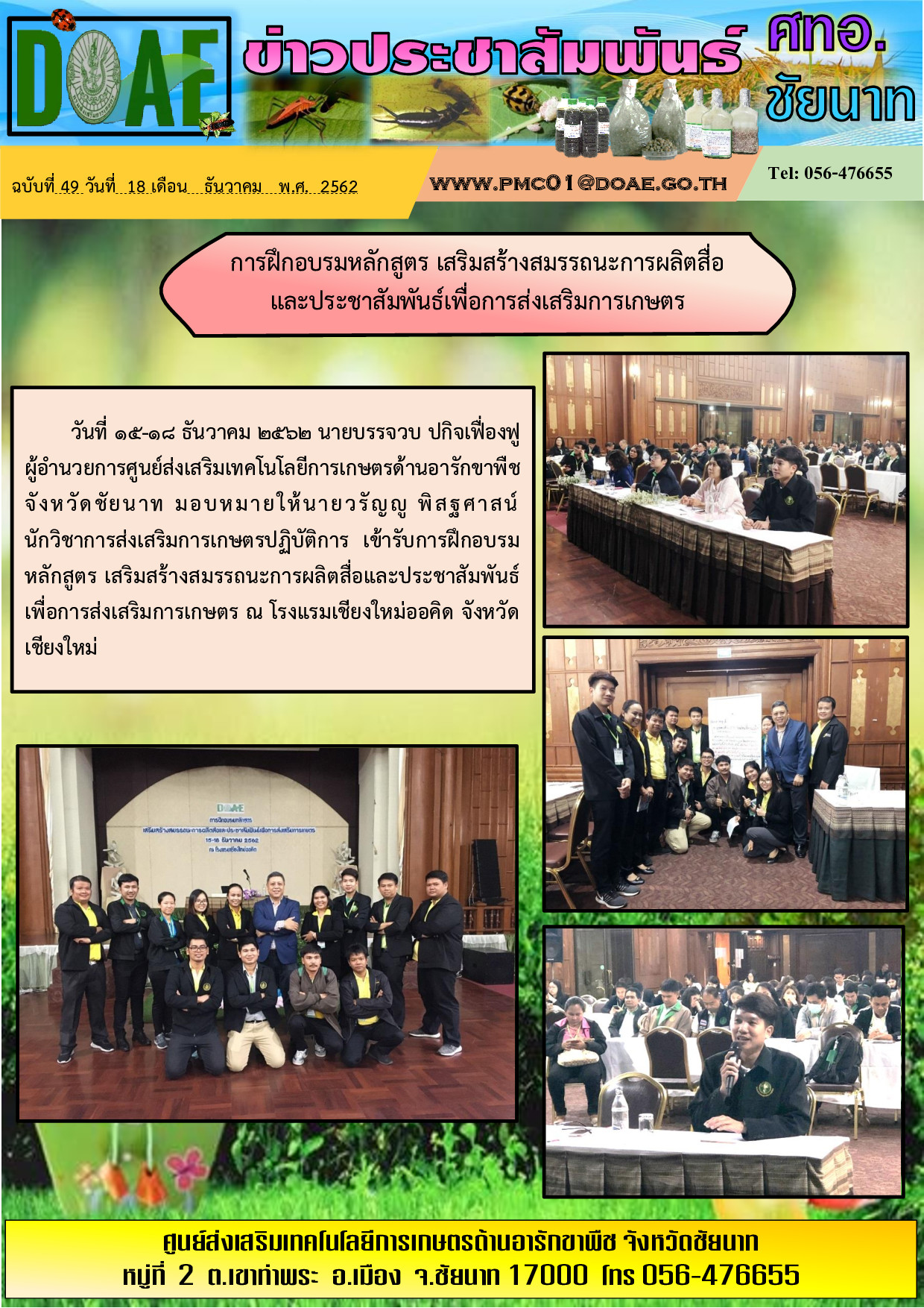 18-12-62 การฝึกอบรมหลักสูตร เสริมสร้างสมรรถนะการผลิตสื่อ และประชาสัมพันธ์เพื่อการส่งเสริมการเกษตร