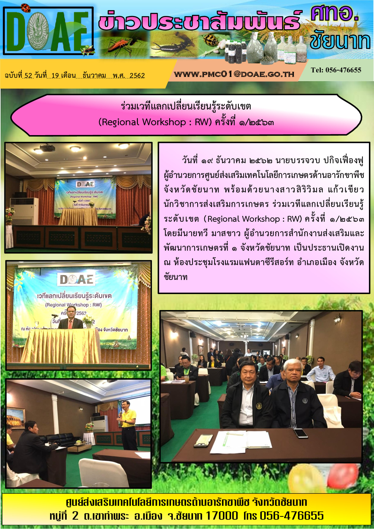 19-12-62 ร่วมเวทีแลกเปลี่ยนเรียนรู้ ระดับเขต (Regional Workshop : RW) ครั้งที่ 1/2563