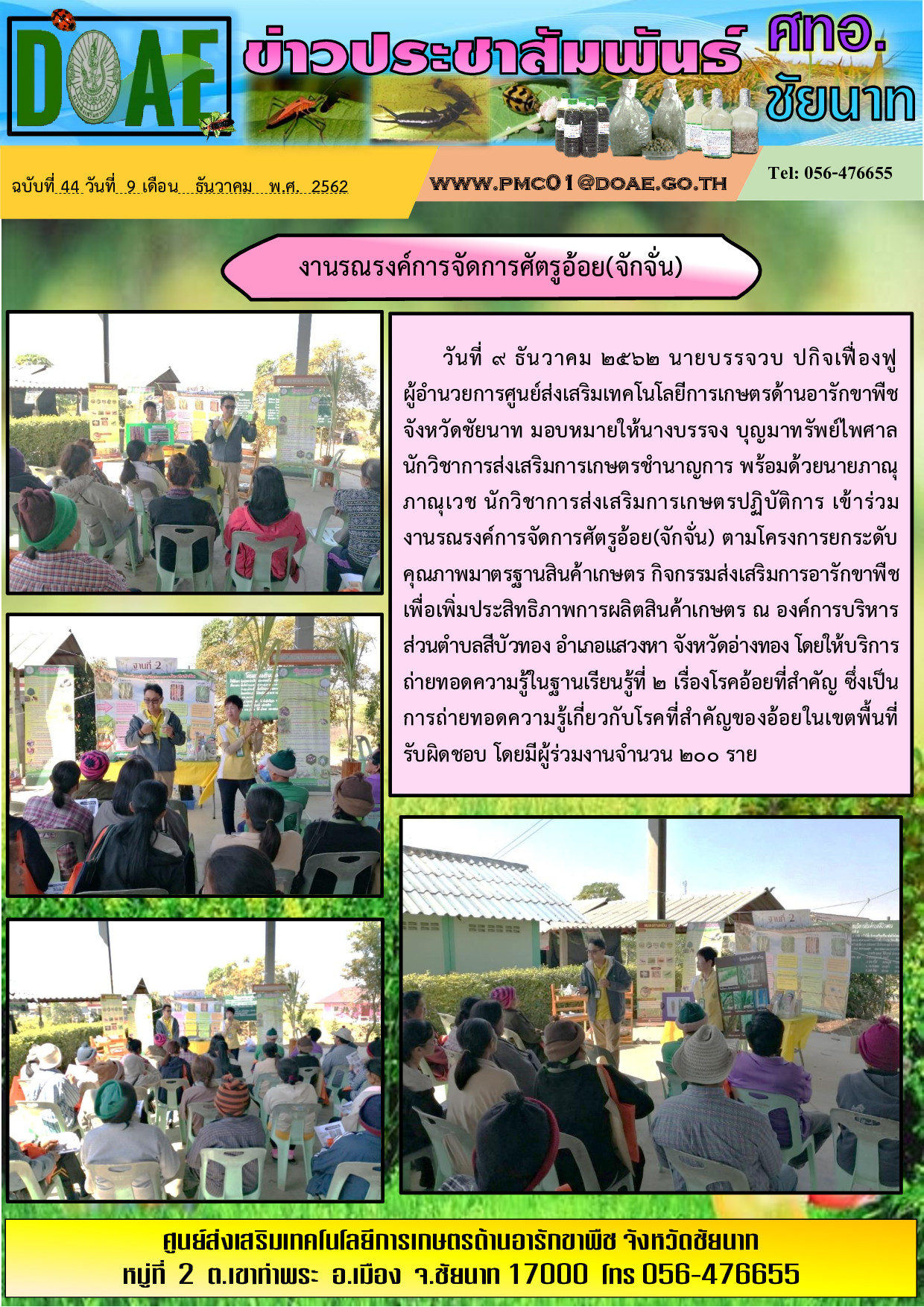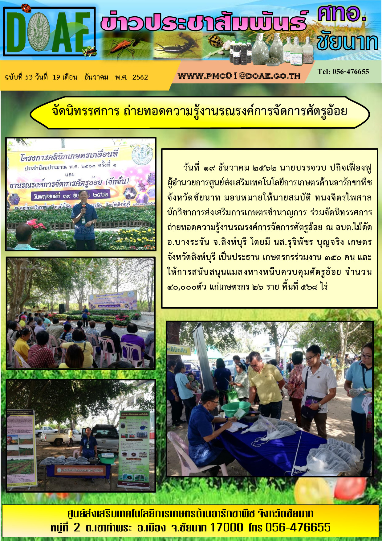 19-12-62 จัดนิทรรศการ ถ่ายทอดความรู้ งานรณรงค์การจัดการศัตรูอ้อย