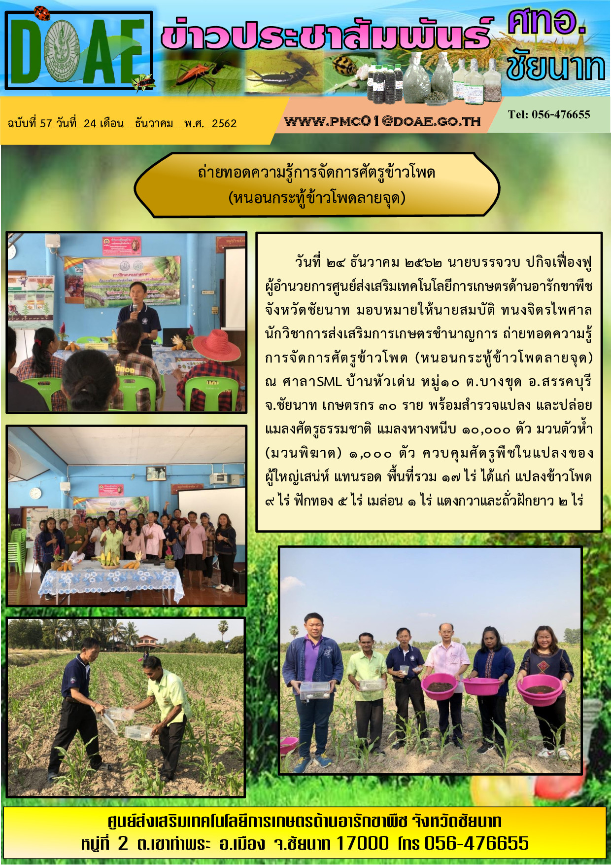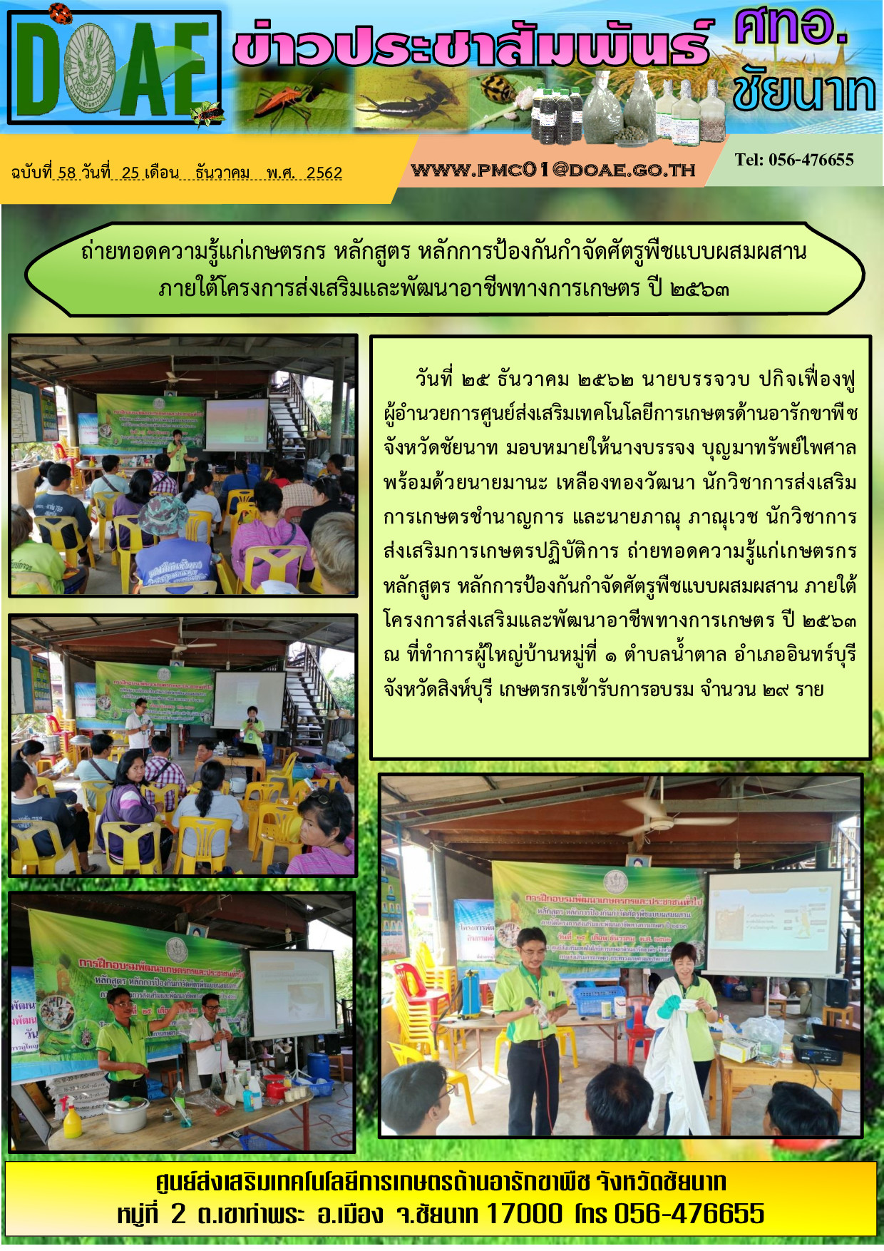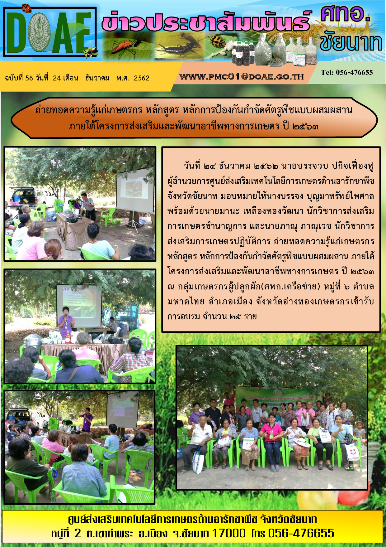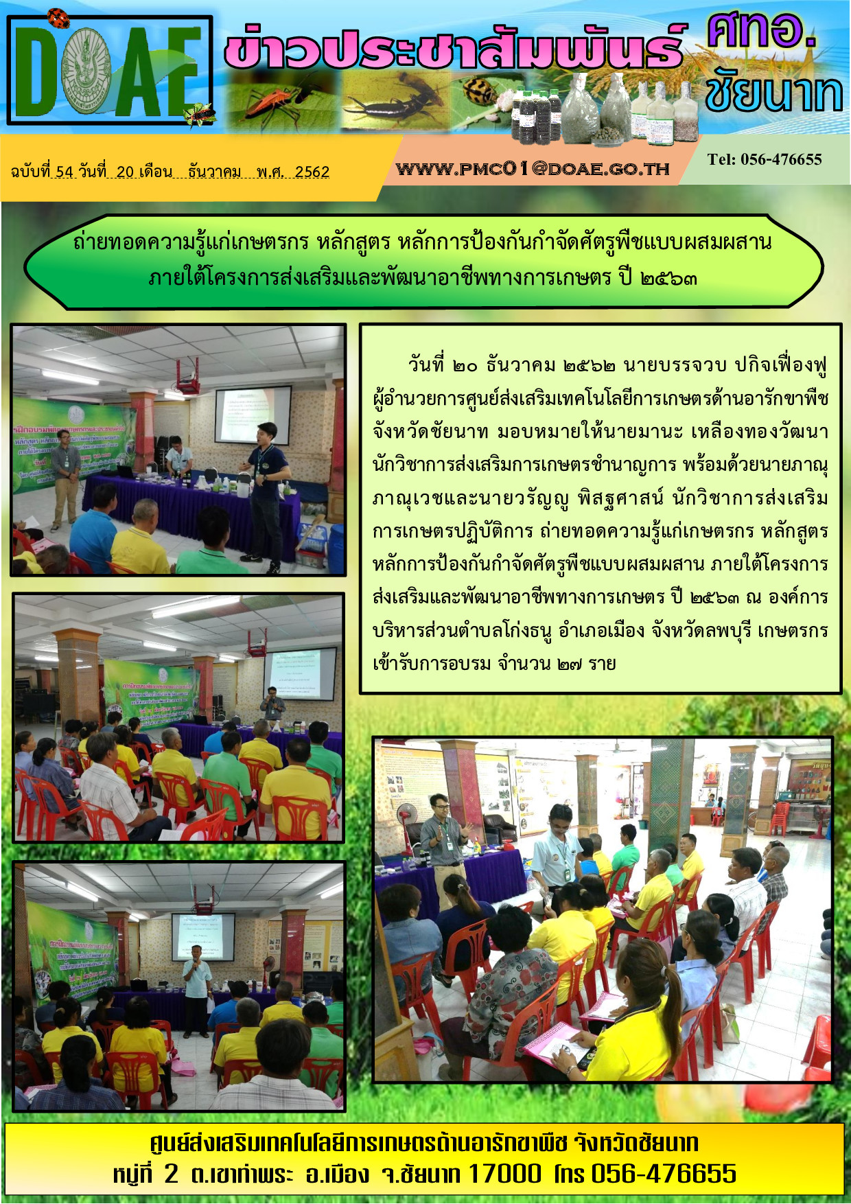20-12-62 ถ่ายทอดความรู้แก่เกษตรกร หลักสูตร หลักการป้องกันกำจัดศัตรูพืชแบบผสมผสาน ภายใต้โครงการส่งเสริมและพัฒนาอาชีพ ทางการเกษตร ปี 2563 จังหวัดลพบุรี