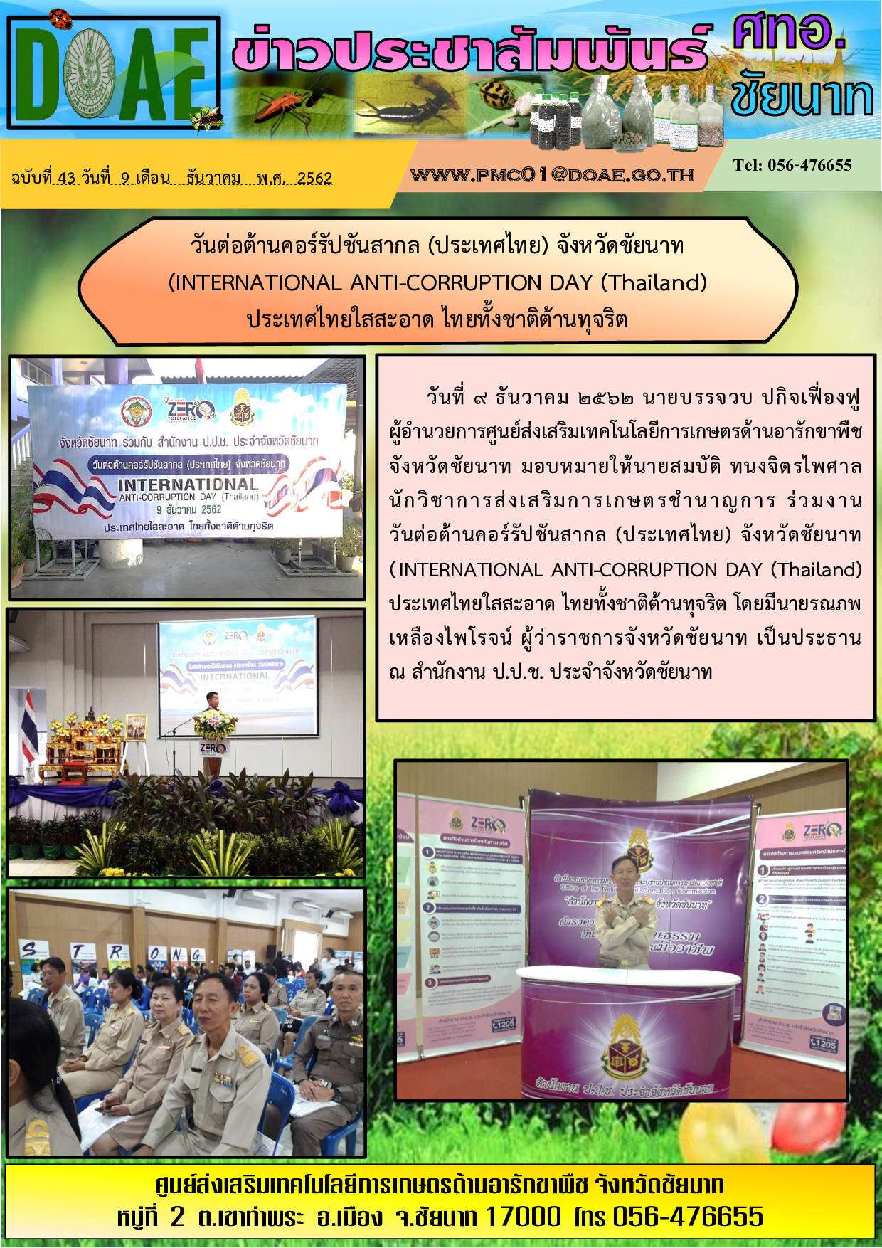 9-12-62 วันต่อต้านคอร์รัปชันสากล (ประเทศไทย) จังหวัดชัยนาท (INTERNATIONAL ANTI-CORRUPTION DAY (Thailand) ประเทศไทยใสสะอาด ไทยทั้งชาติต้านทุจริต