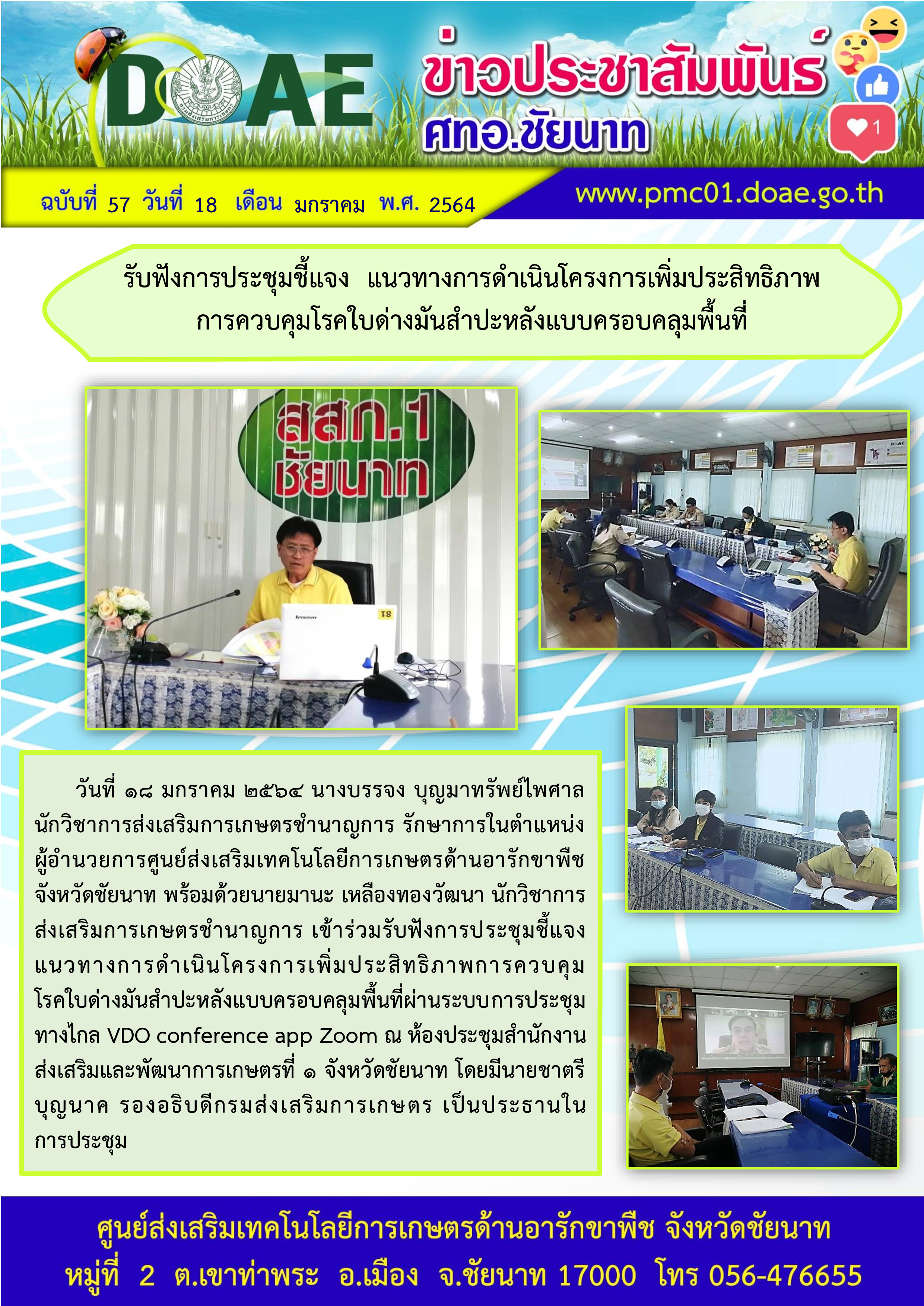 18-1-64 เข้าร่วมรับฟังการประชุมชี้แจงแนวทางการดำเนิน โครงการเพิ่มประสิทธิภาพการควบคุม โรคใบด่างมันสำปะหลังแบบครอบคลุมพื้นที่