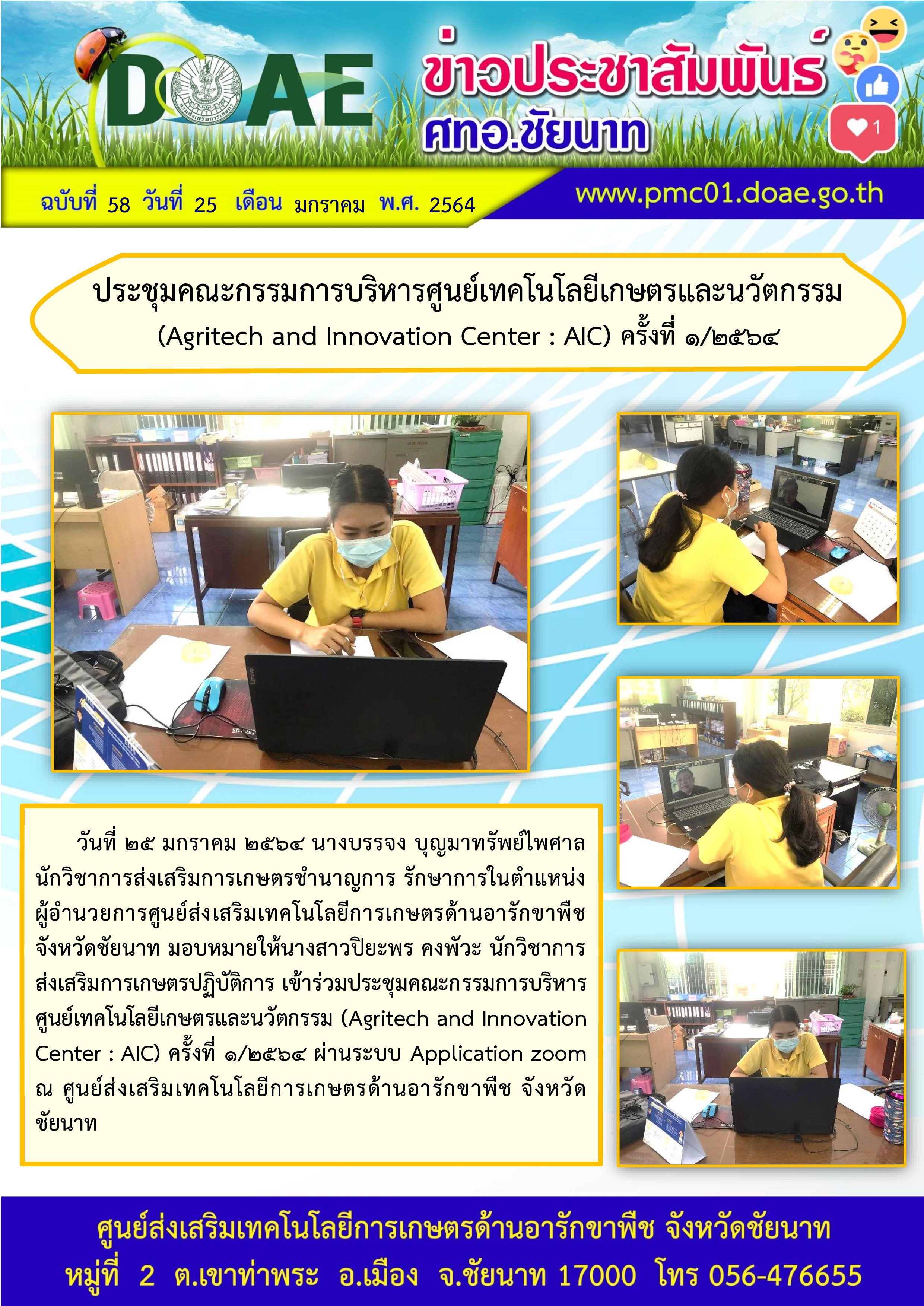 25-1-64 ร่วมรับฟังการประชุมคณะกรรมการบริหาร ศูนย์เทคโนโลยีเกษตรและนวัตกรรม (Agritech and Innovation Center : AIC) ครั้งที่ 1/2564