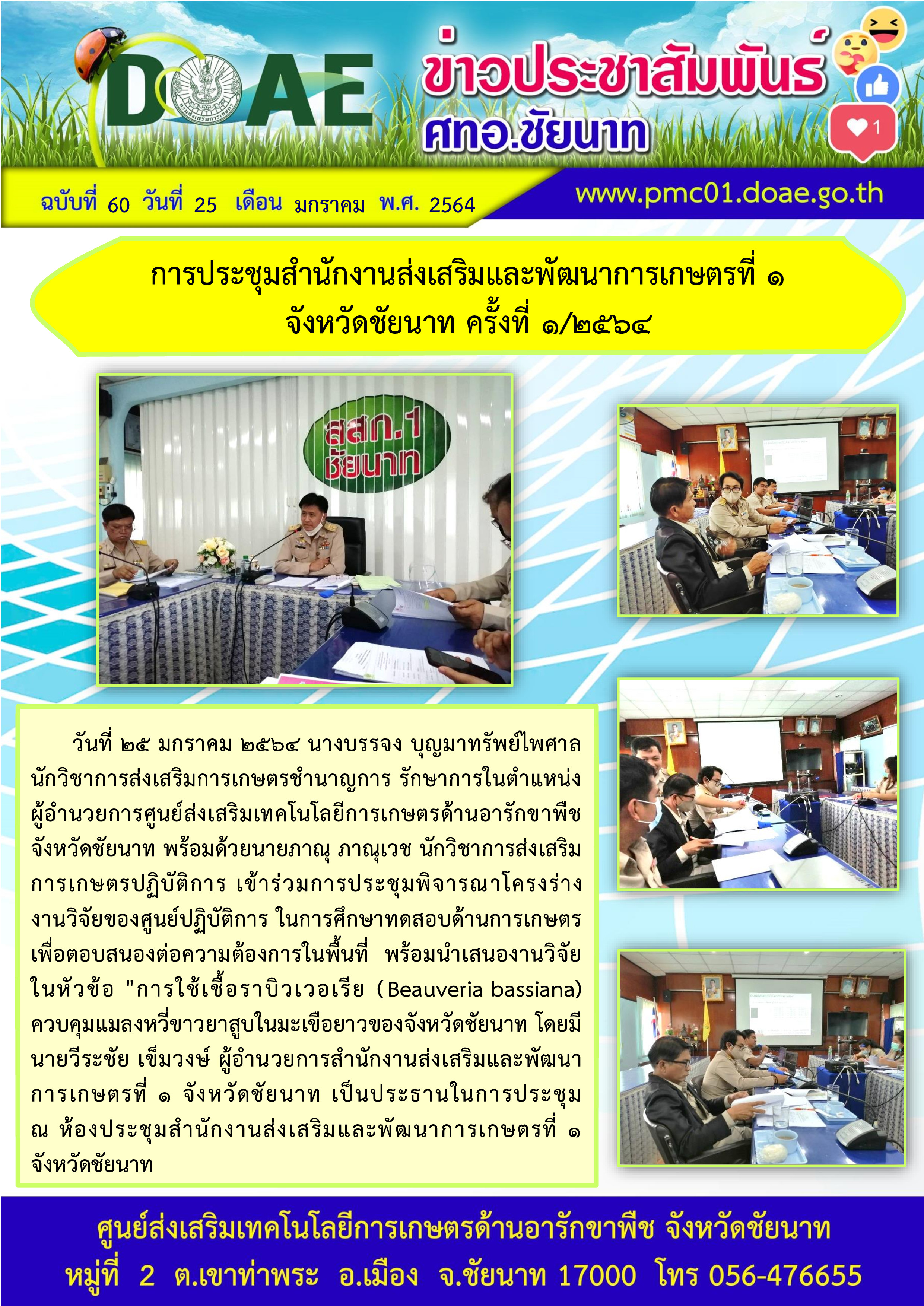 25-1-64 การประชุมสำนักงานส่งเสริมและพัฒนาการเกษตร ที่ 1 จังหวัดชัยนาท ครั้งที่ 1/2564
