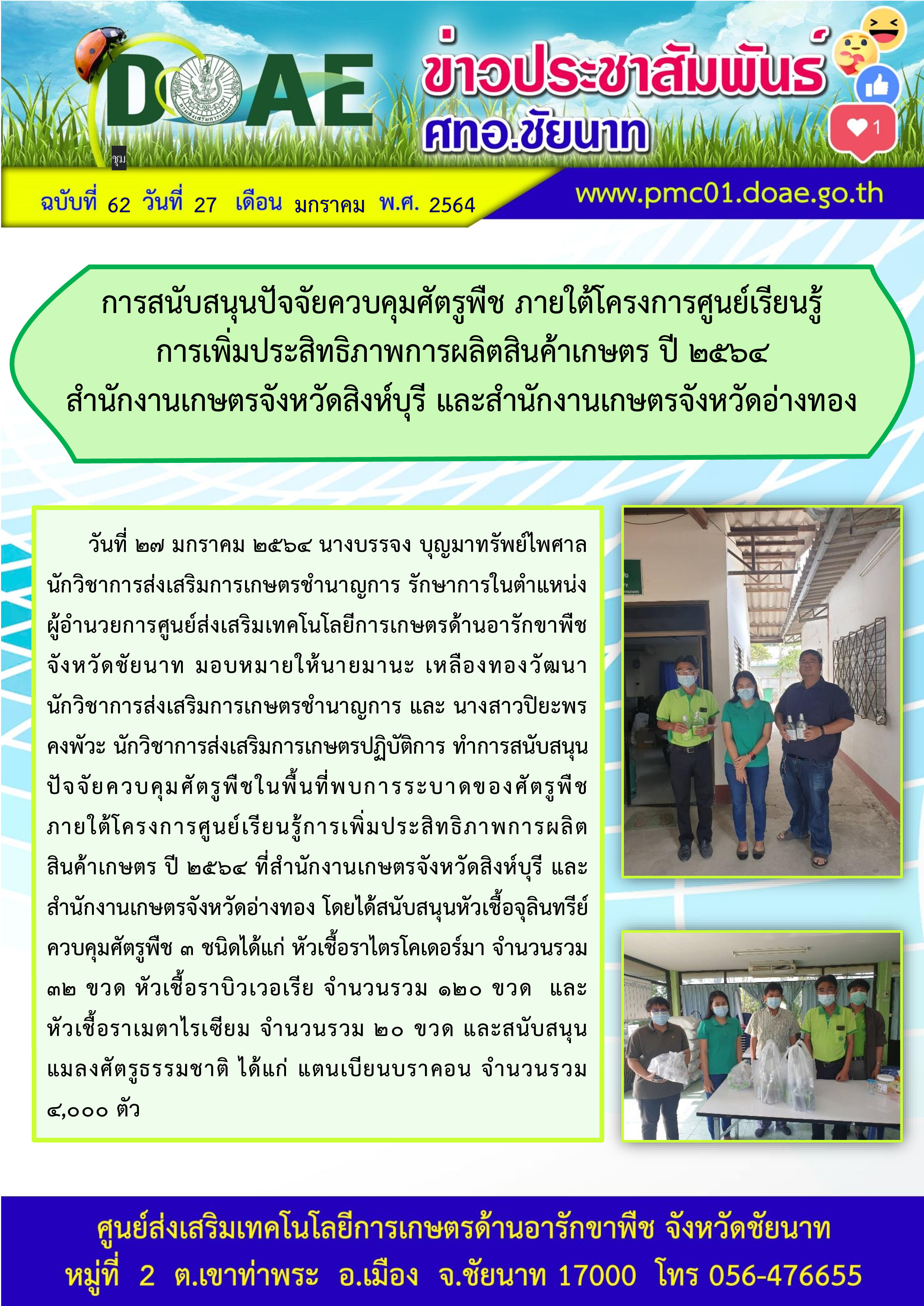 27-1-64 การสนับสนุนปัจจัยควบคุมศัตรูพืชในพื้นที่ พบการระบาดของศัตรูพืช ภายใต้โครงการศูนย์เรียนรู้การเพิ่มประสิทธิภาพ การผลิตสินค้าเกษตร ปี 2564